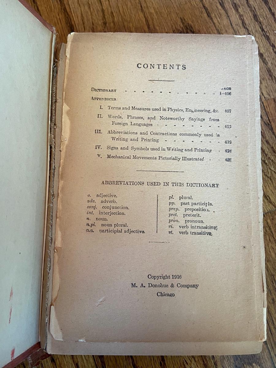 Donohoue's Standard Dictionary, red hardcover, published by M. A. Donohue and CO.