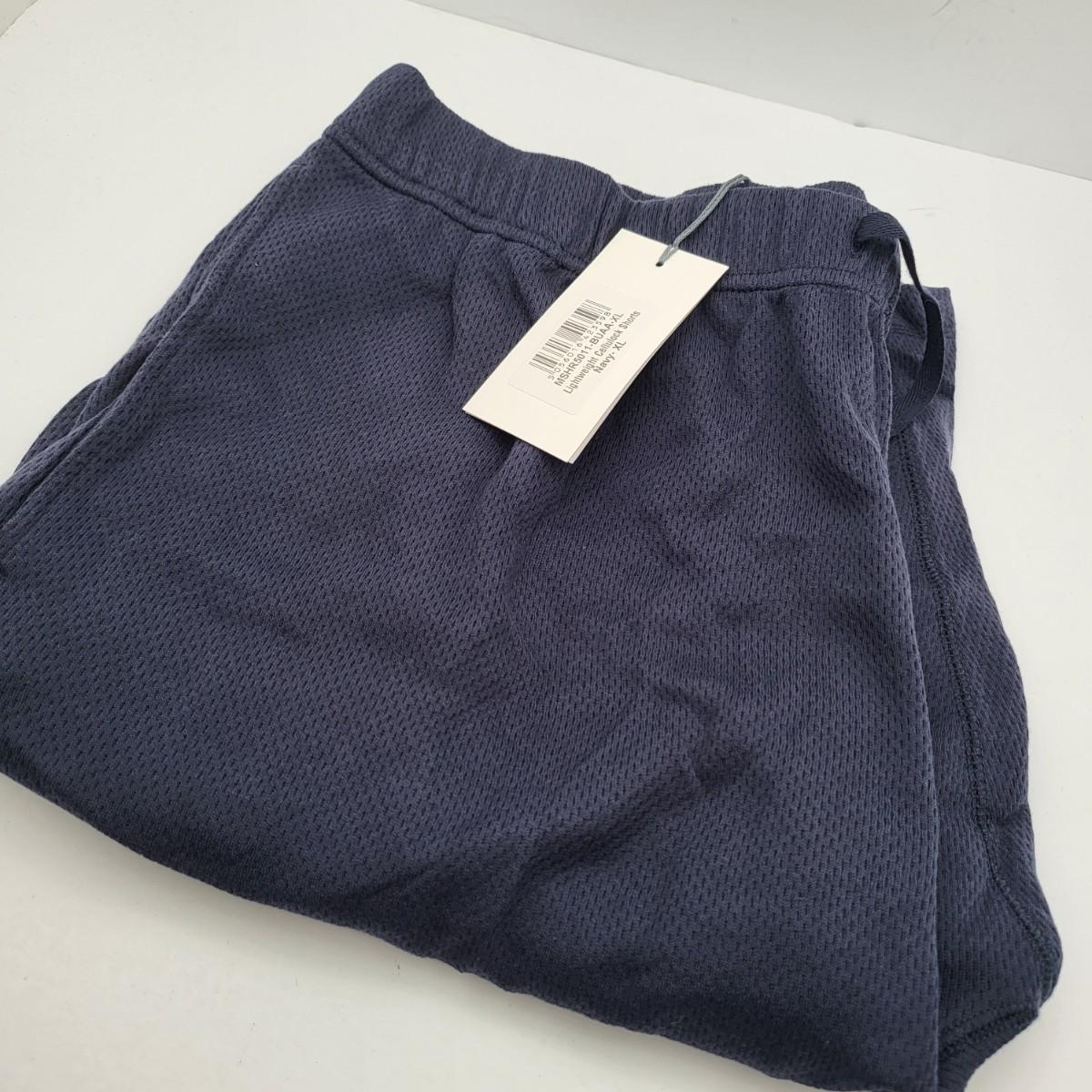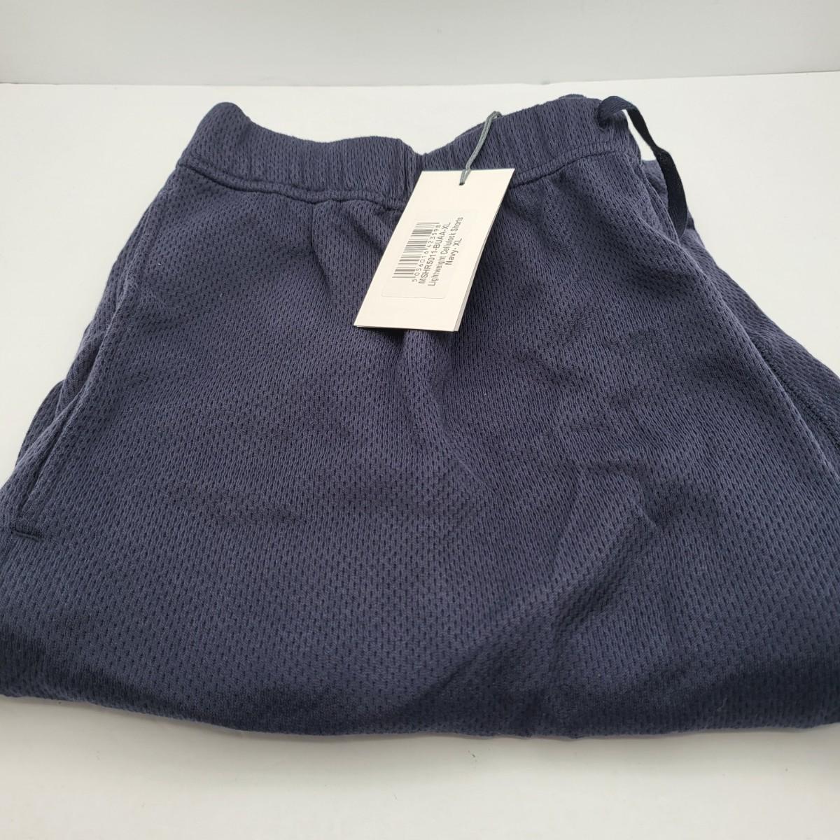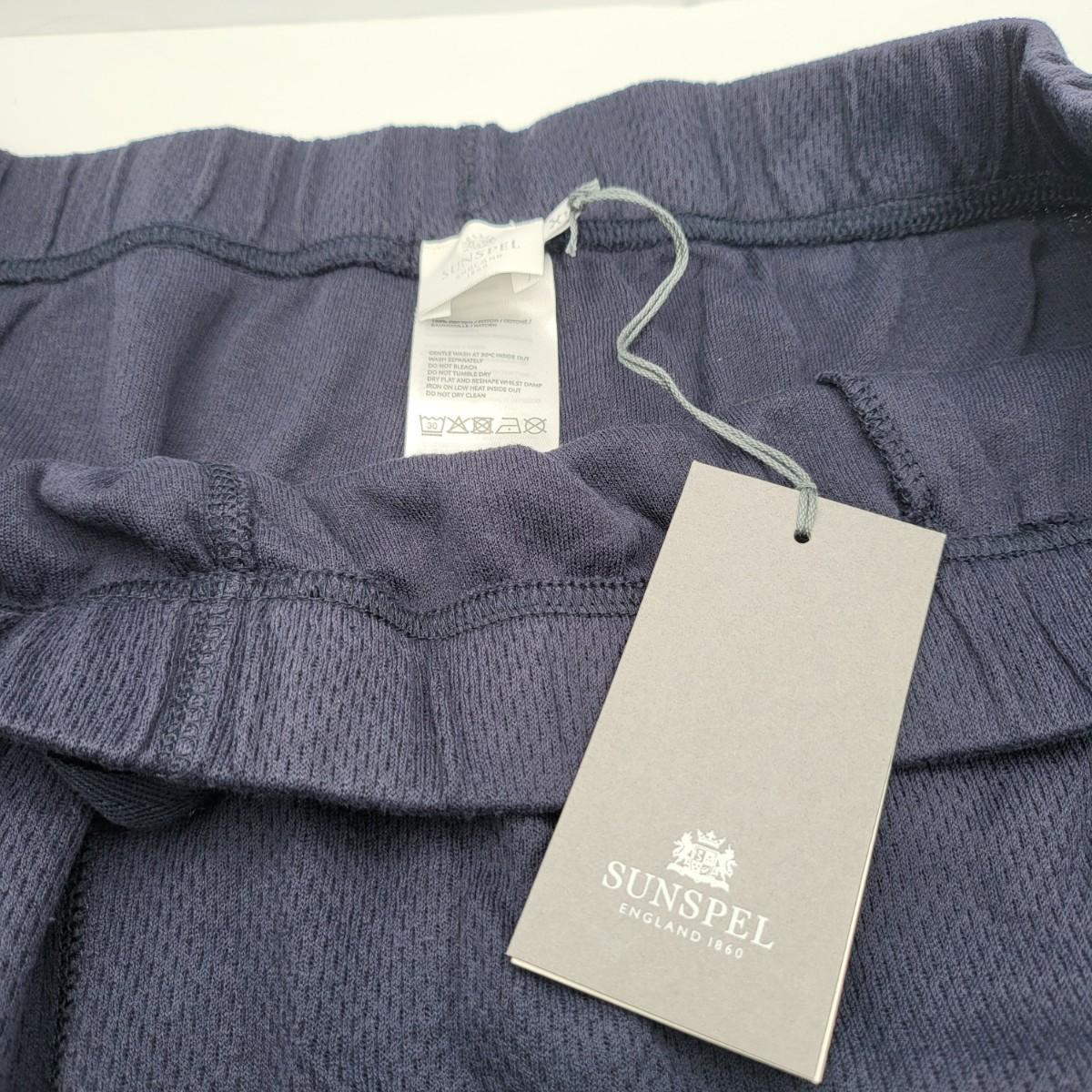New navy shorts by Sunspel England. Drawstring front, side pockets, single back pocket. Size XL.