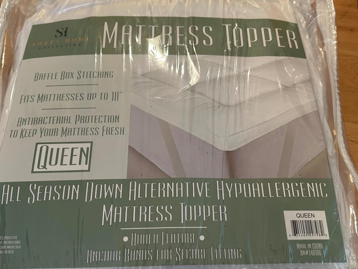 New and sealed Sweet Home Queen Size Mattress Topper Hypoallergenic Down Alternative.