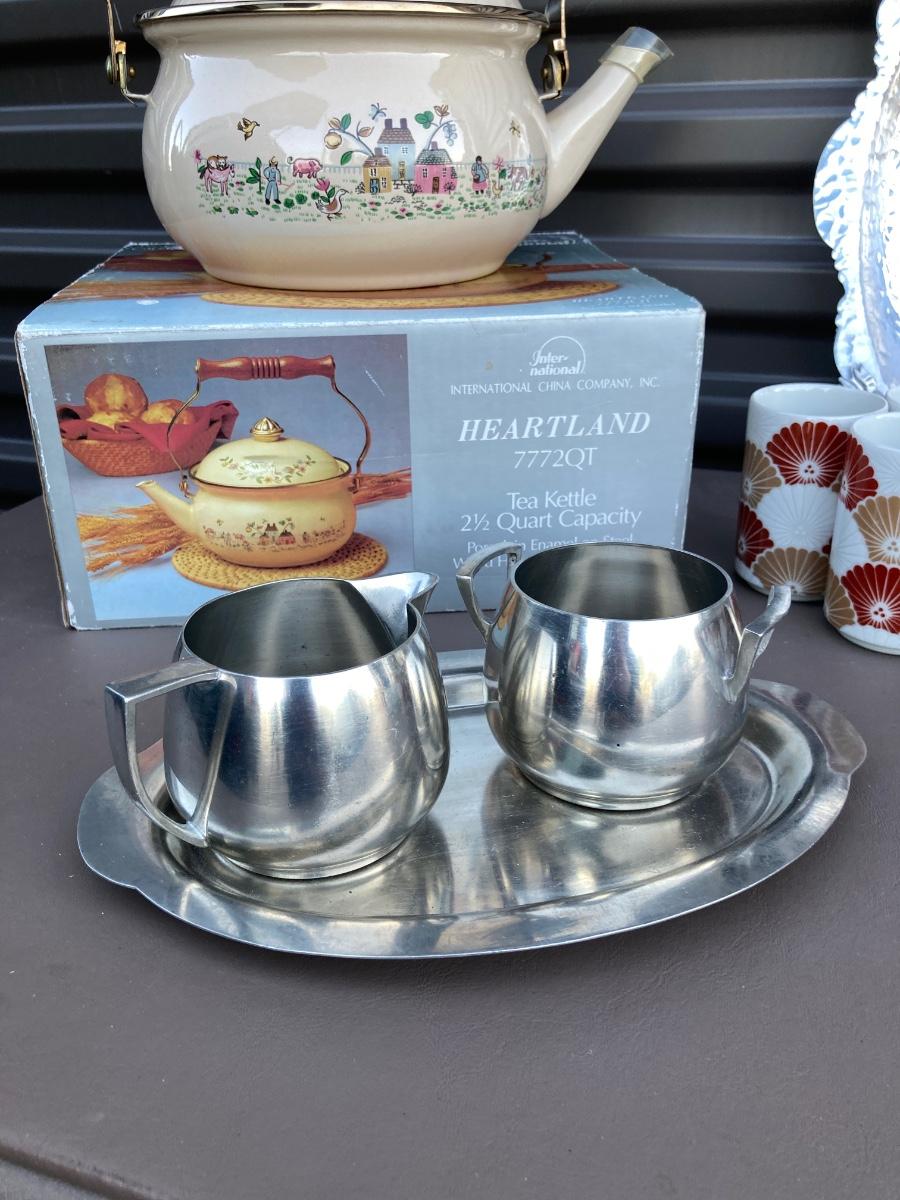 «– NEW TEA KETTLE, FEDRAL PEWTER CREAM AND SUGAR SET & MORE!