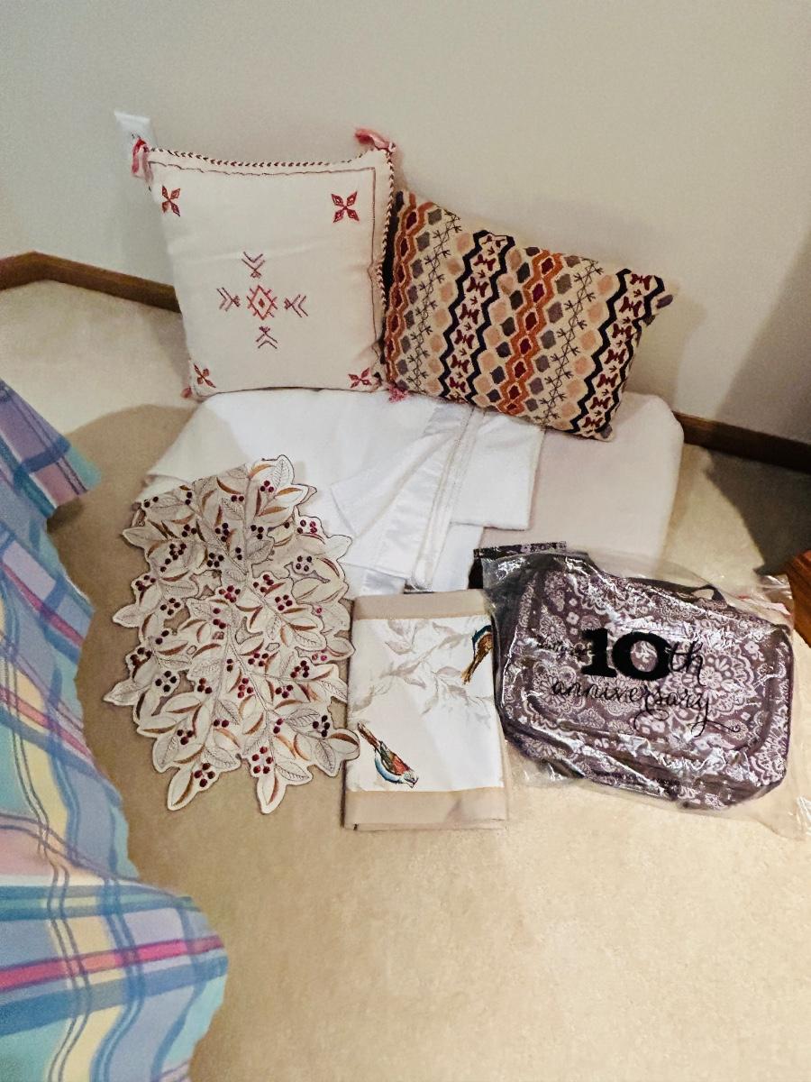 NEW THIRTY ONE BAD, EARTH TONED COLORED BLANKETS, pILLOWS AND TABLE RUNNERS