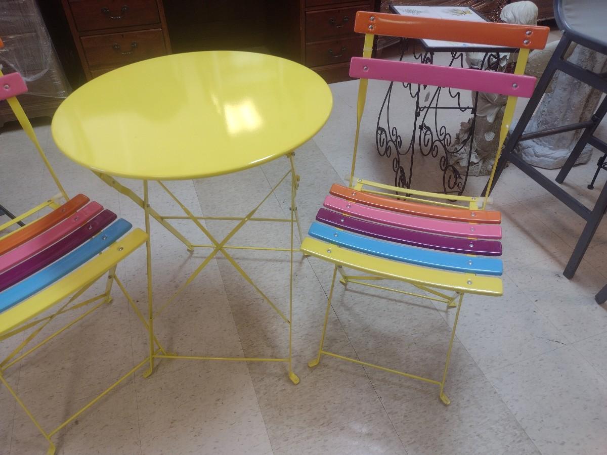New Three-Piece Patio Chair and Table Set Folding Leg Design Set 1