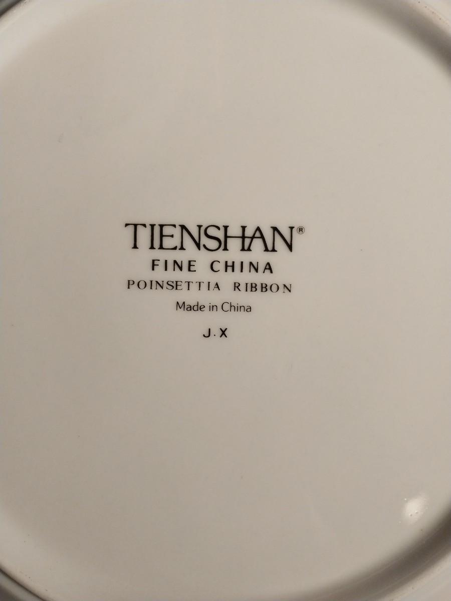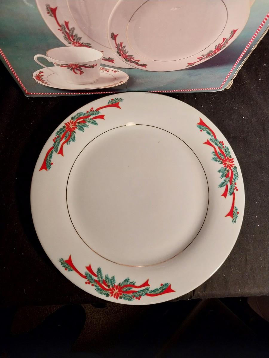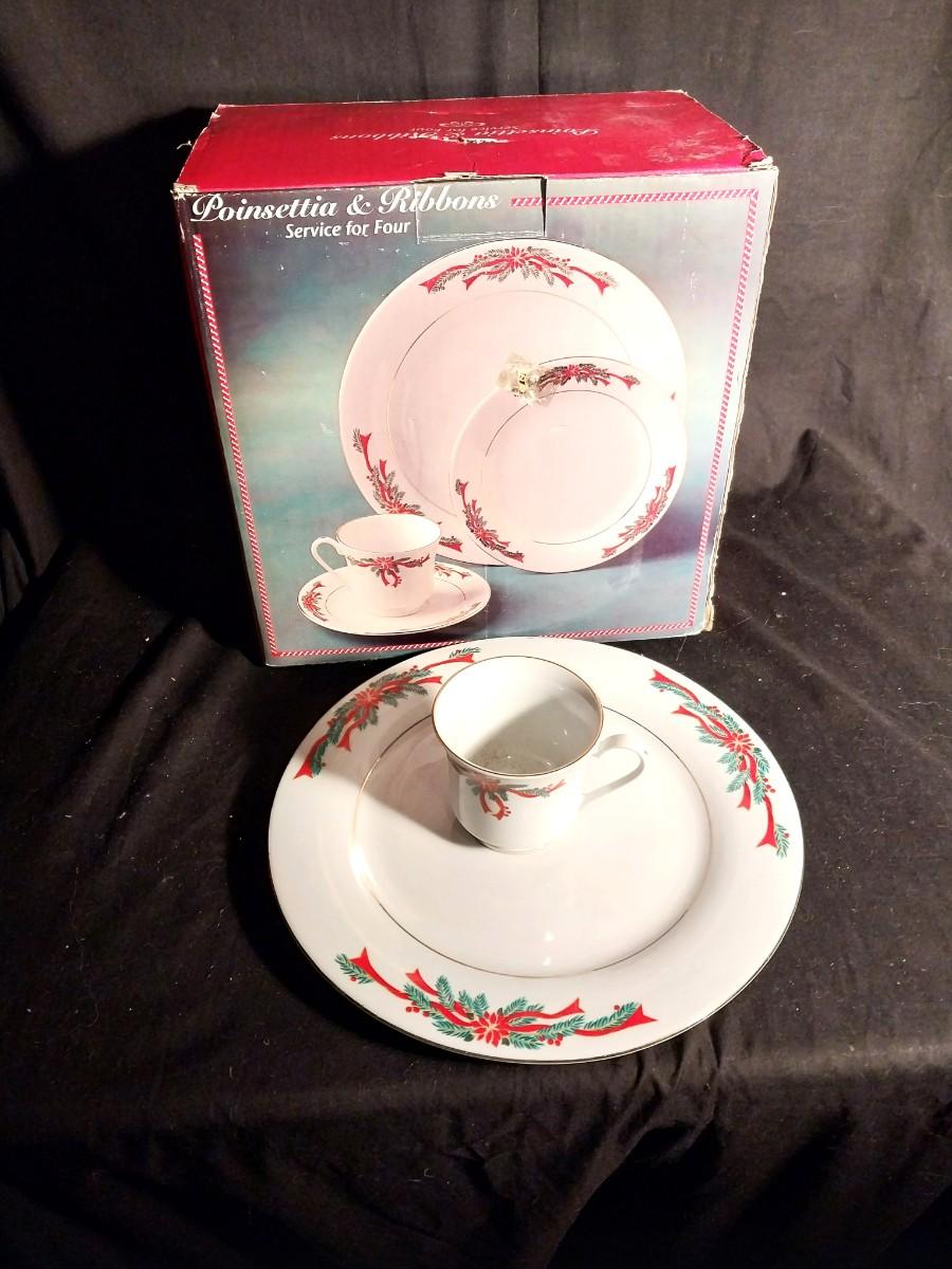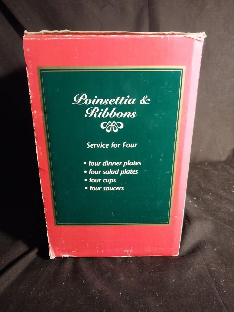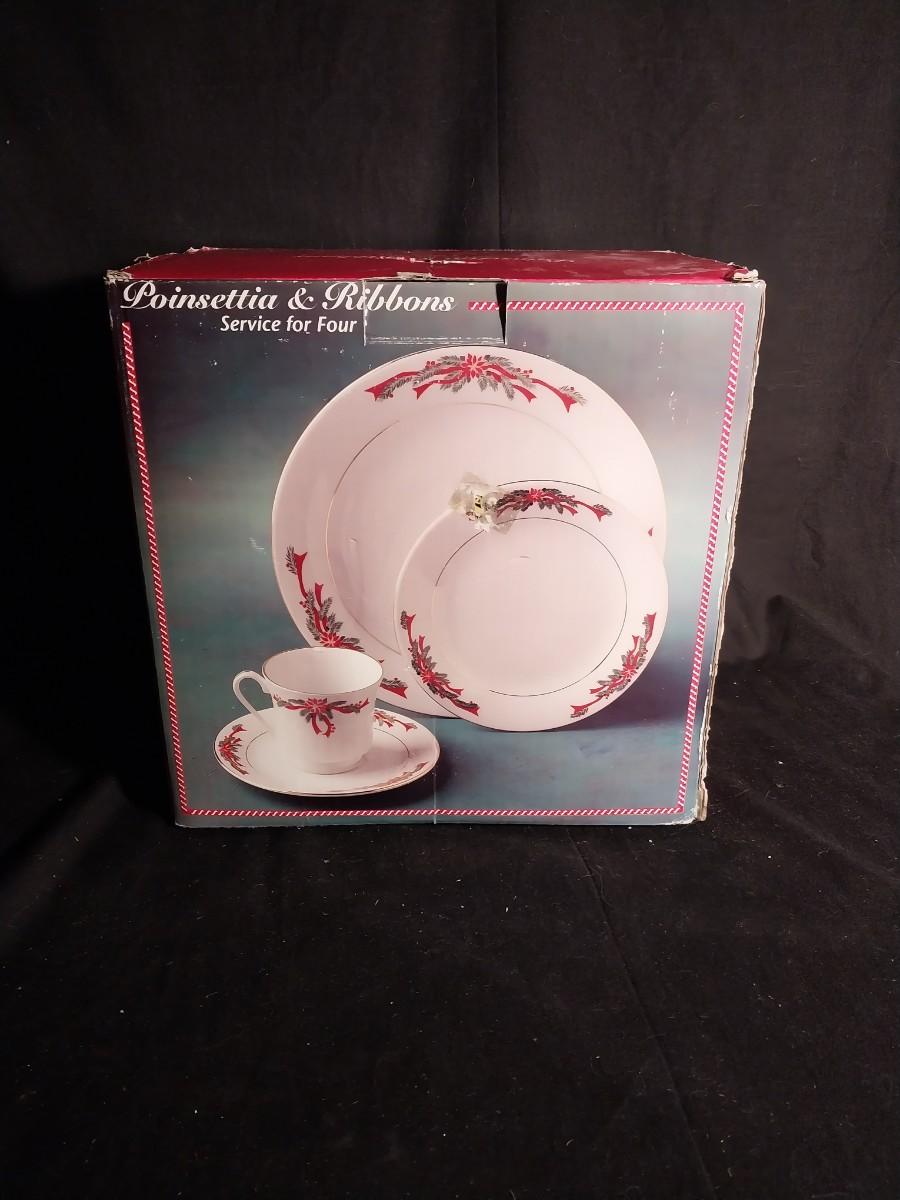 NEW TIENSHAN FINE CHINA SERVICE FOR FOUR "POINSETTIA & RIBBONS"