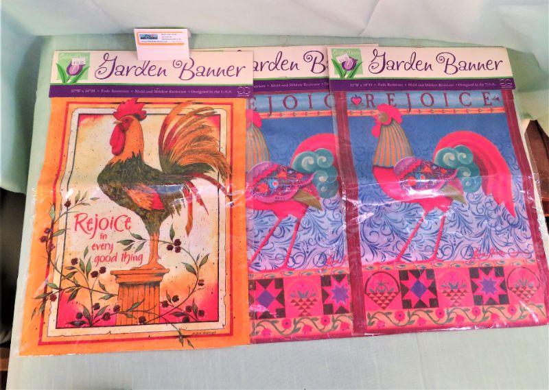 NWT. 11" x 14" Lot of 3 Roosters Flag - (2 lbs shipping)