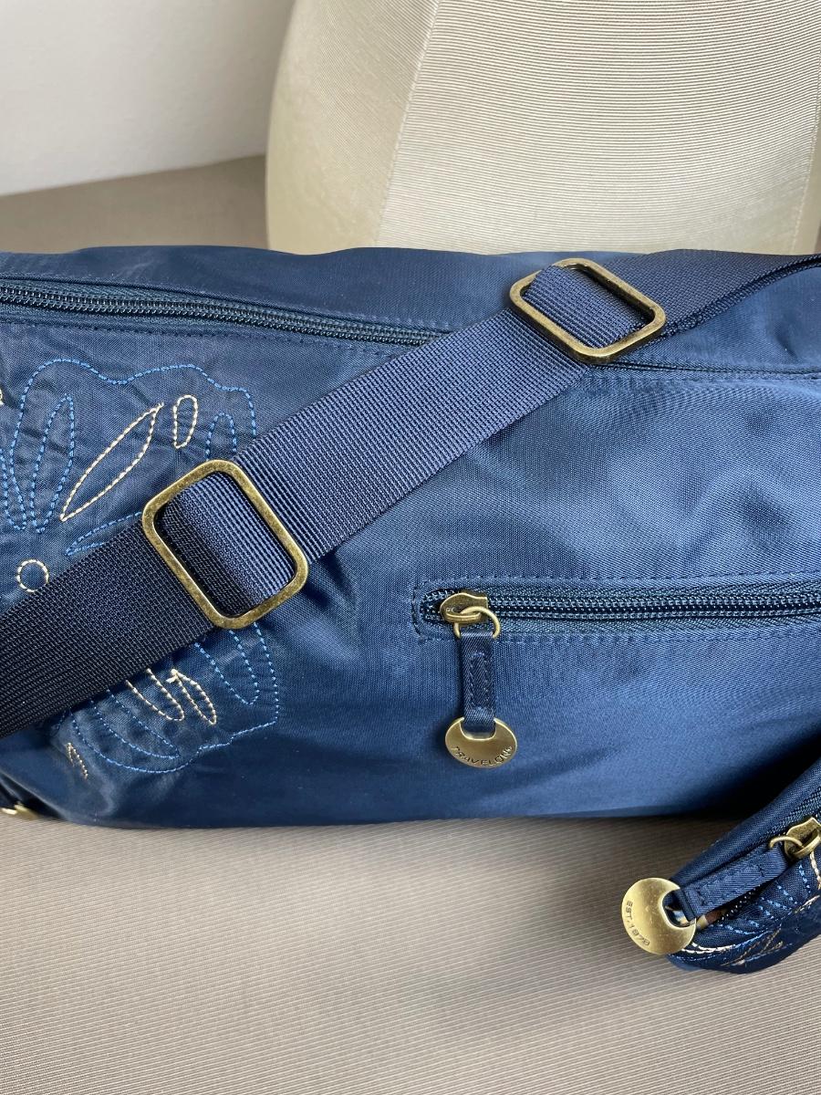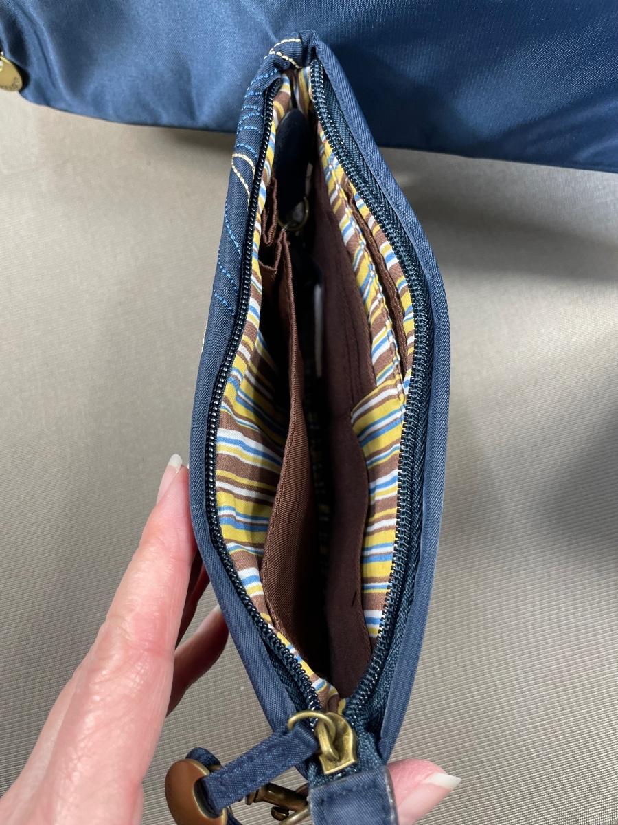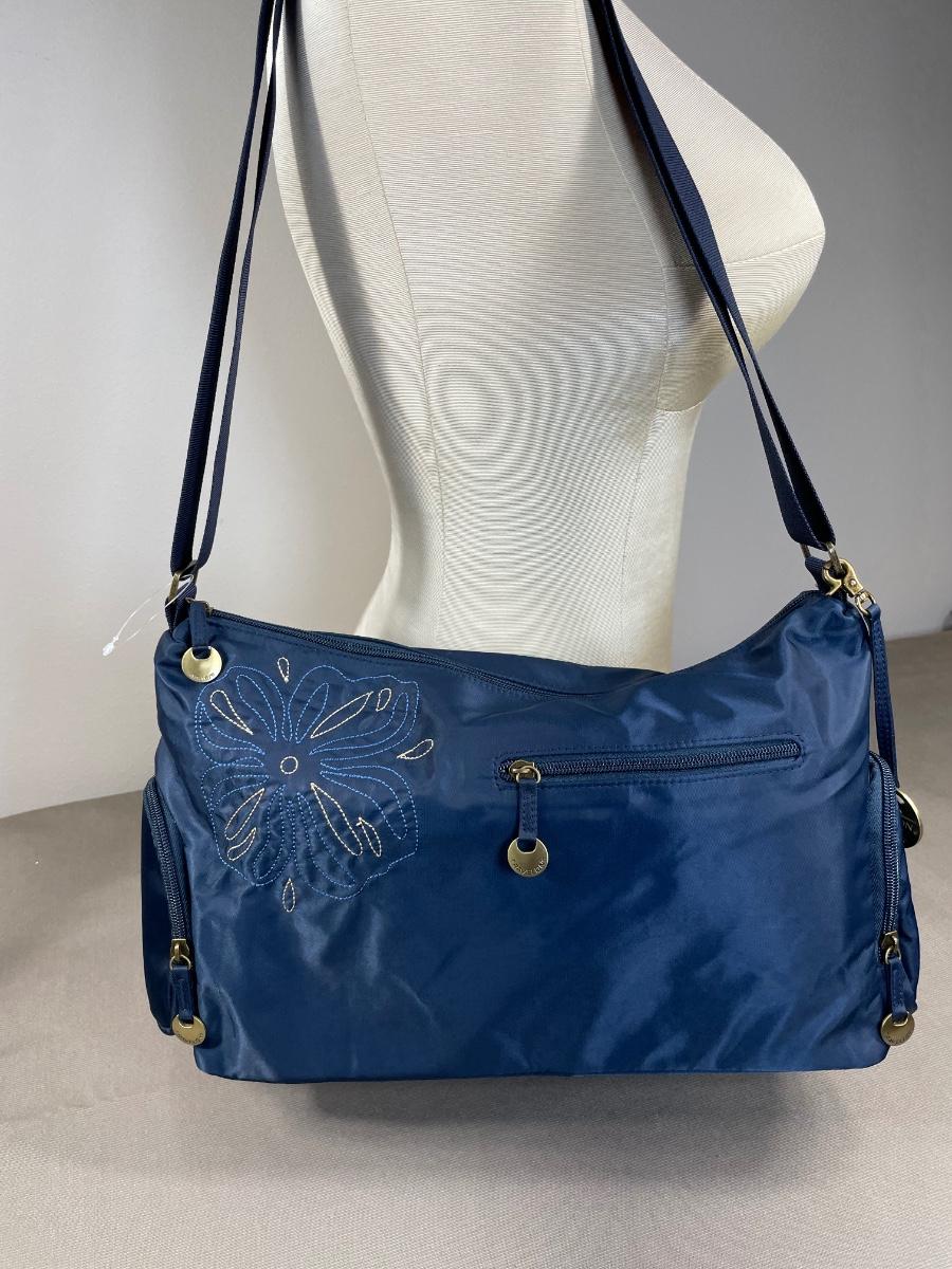 NWOT in excellent condition. With floral embroidered design. Lightweight for travel. Bag has detachable webbed strap. 15” by 9” on the bag with 9” by 5” wallet.