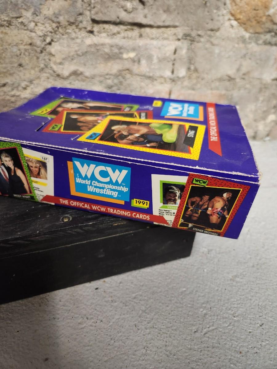 Dated 1991 brand new never opened case of WCW trading cards.