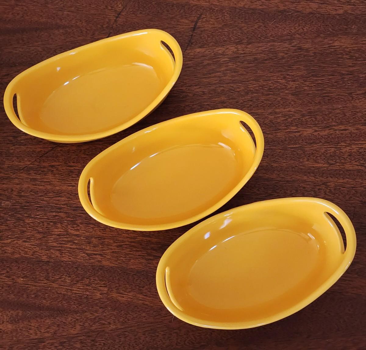 3 - 7 1/2" oval miniature baking dishes.