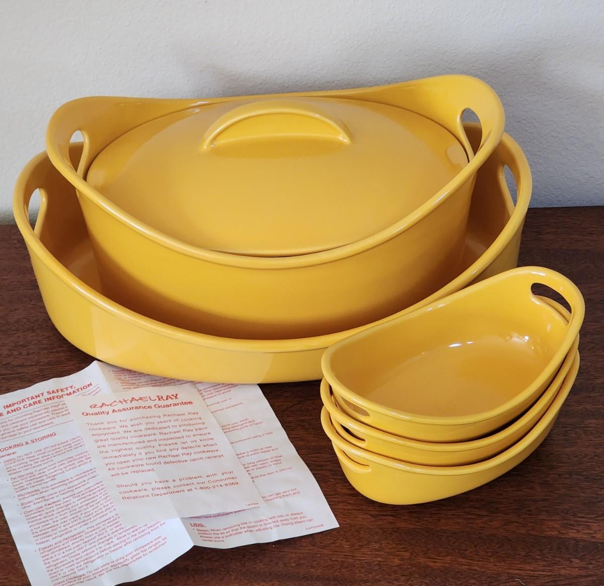 NEW / UNUSED - 5 Piece Lot: Harvest Yellow Rachael Ray Oven and Microwave Safe Cookware