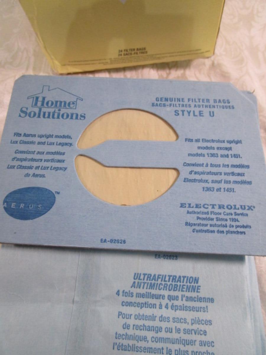 For Electolux, 25 blue Style U filter bags, 5 yellow bags are 10-1/4" x 5-1/4"