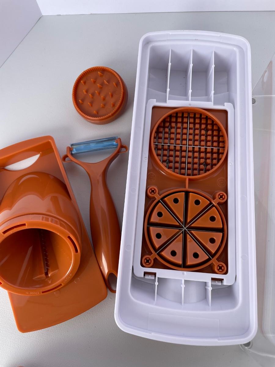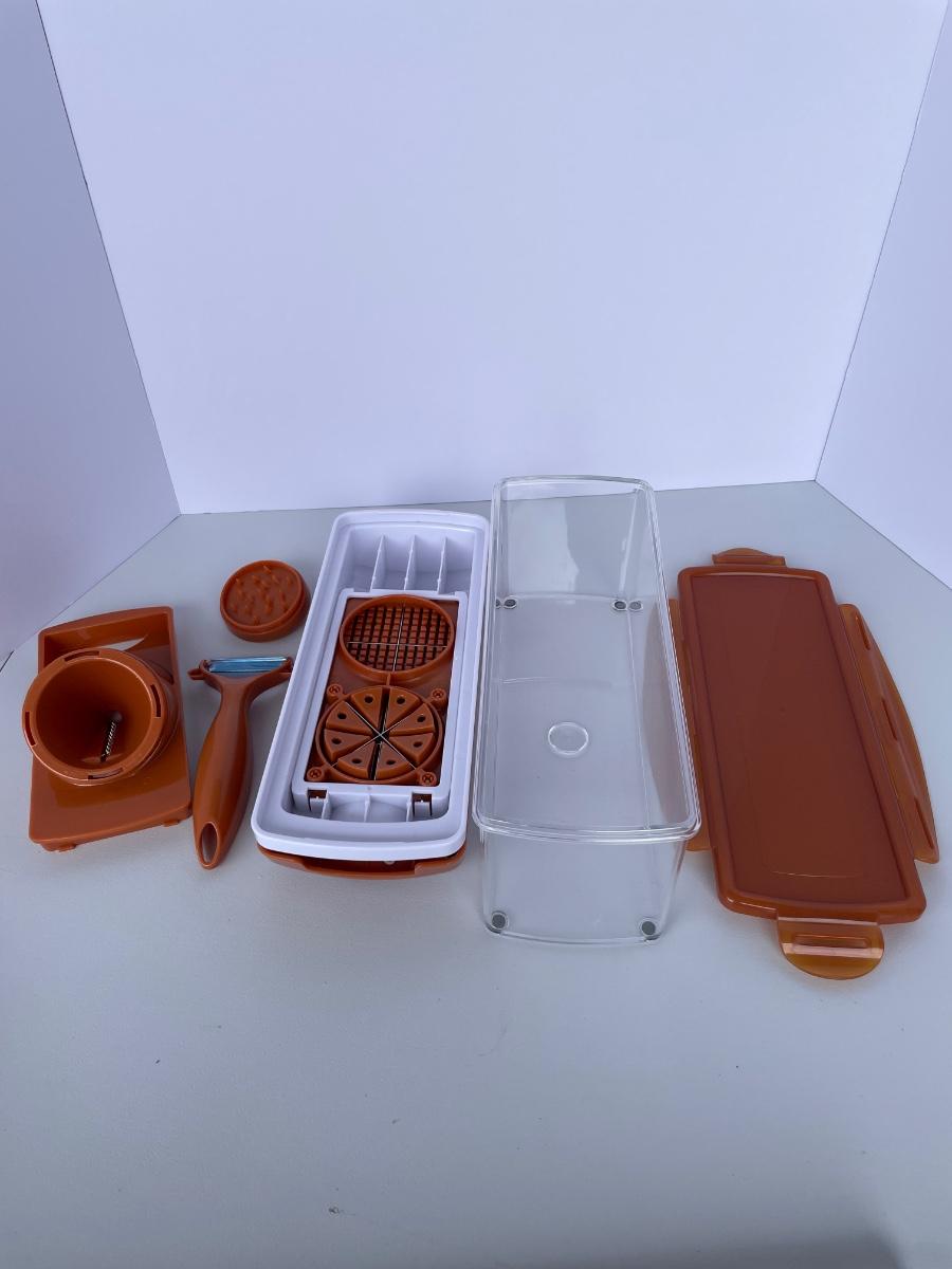 New never used, includes spiral attachment, shredder, apple corer and slicer and more.