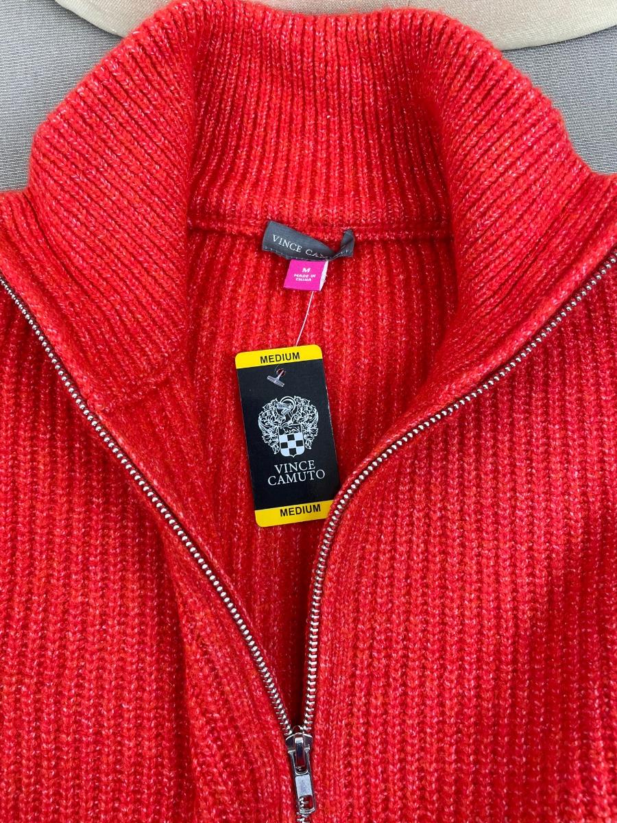 New Vince Camuto Orange Knit 1/4 Zip Sweater Medium