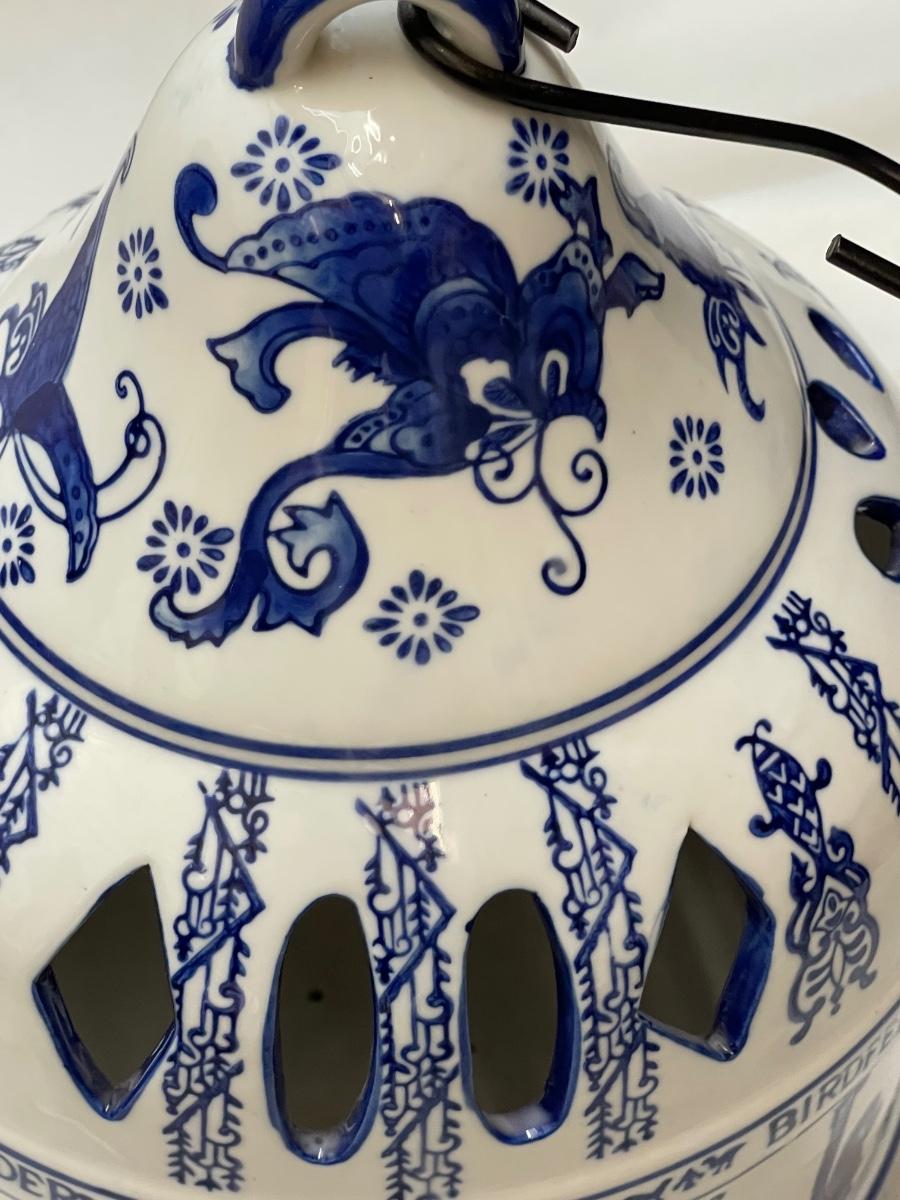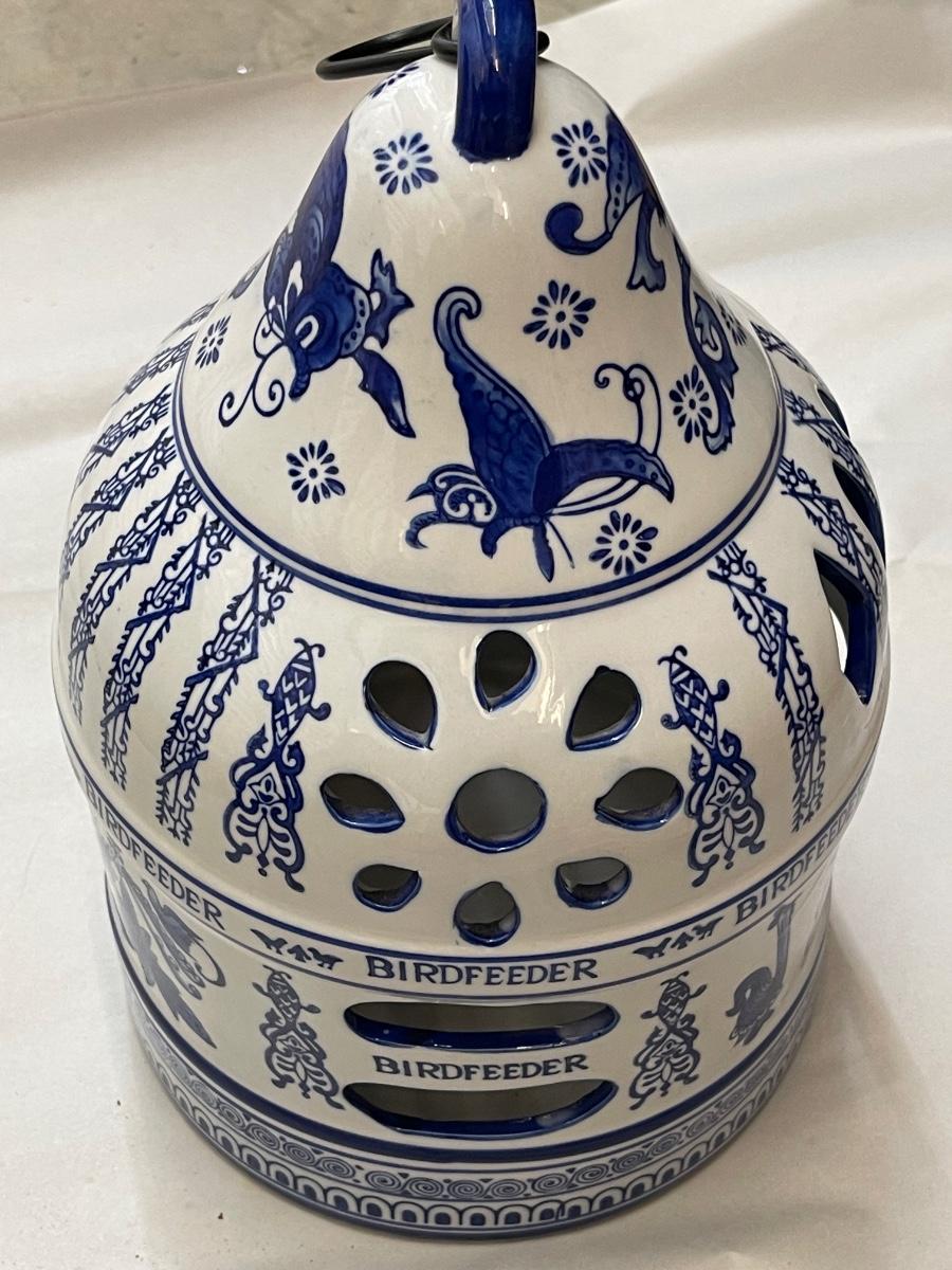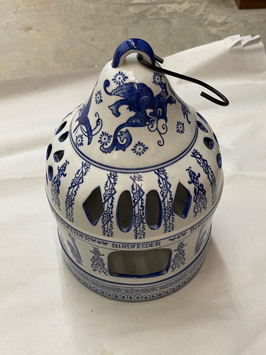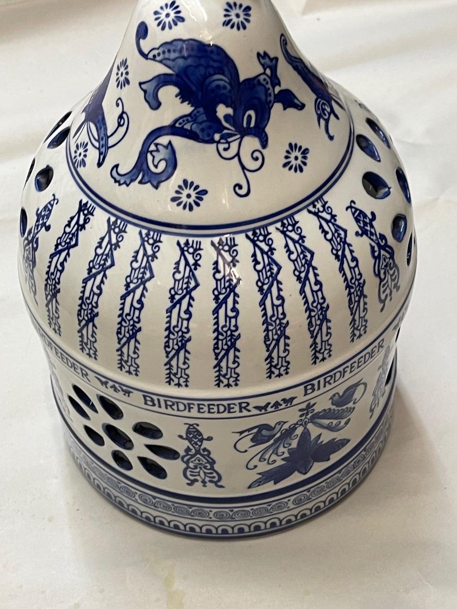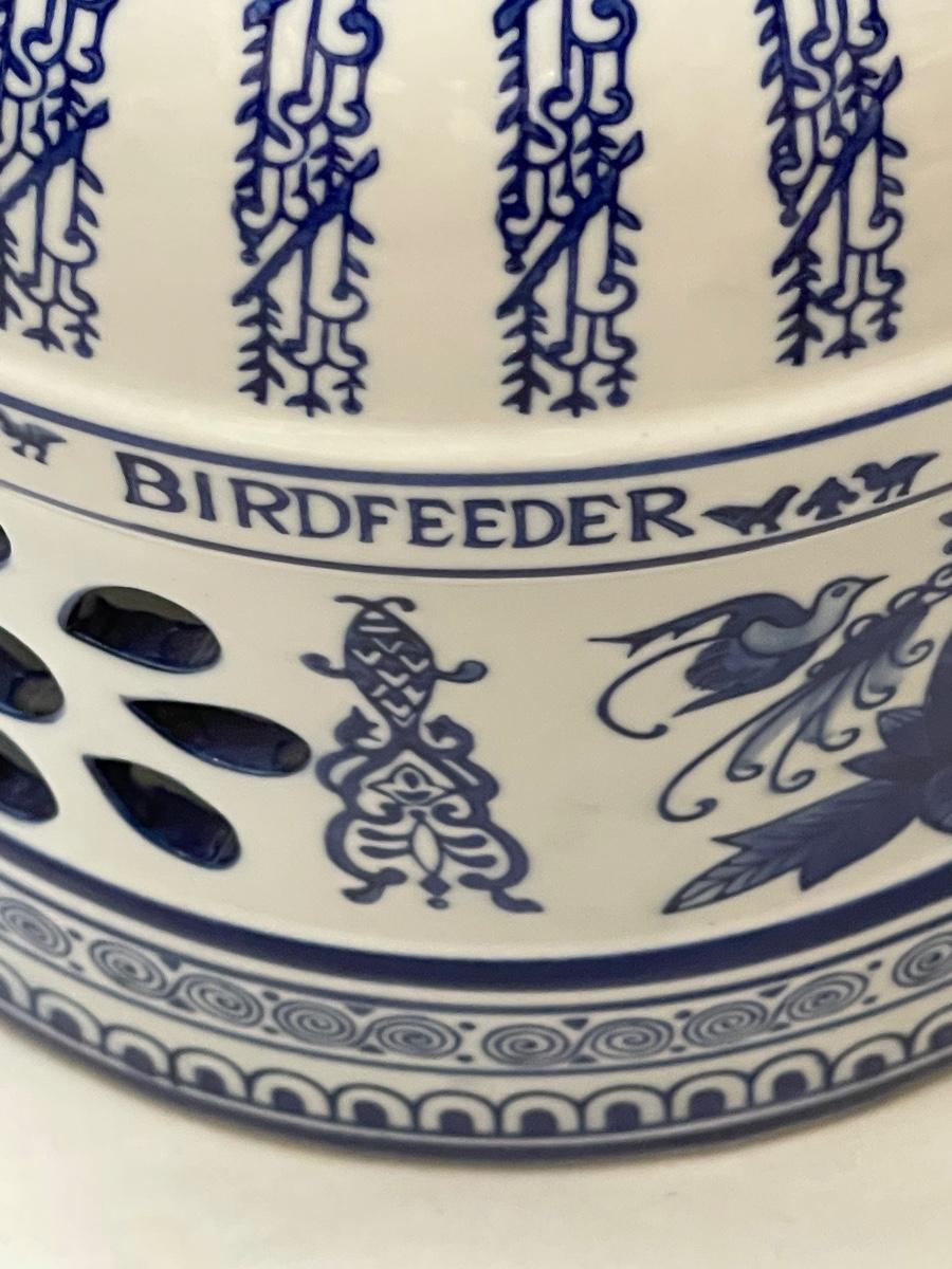 NEW Vintage Blue and White Ceramic Bird Feeder