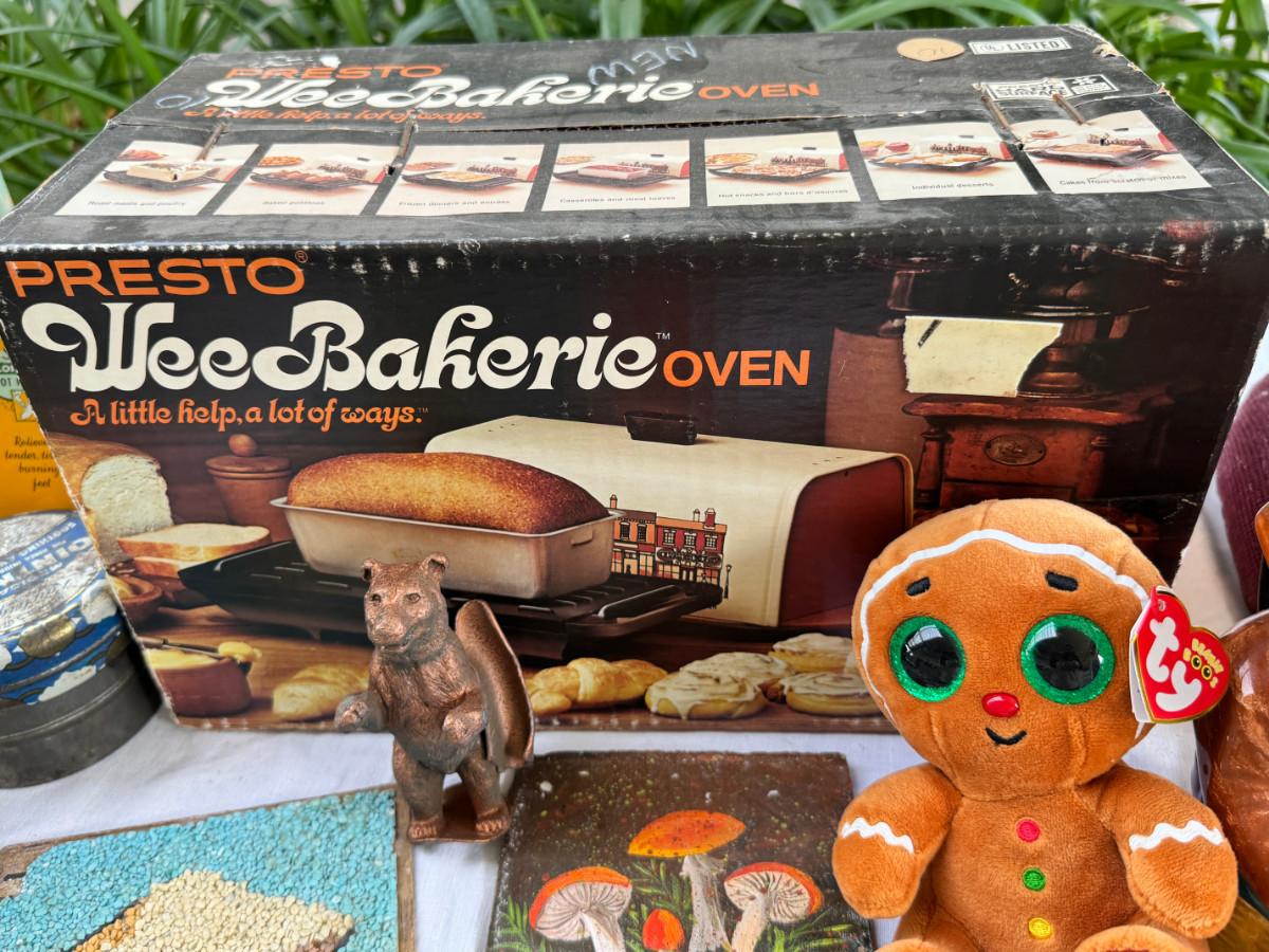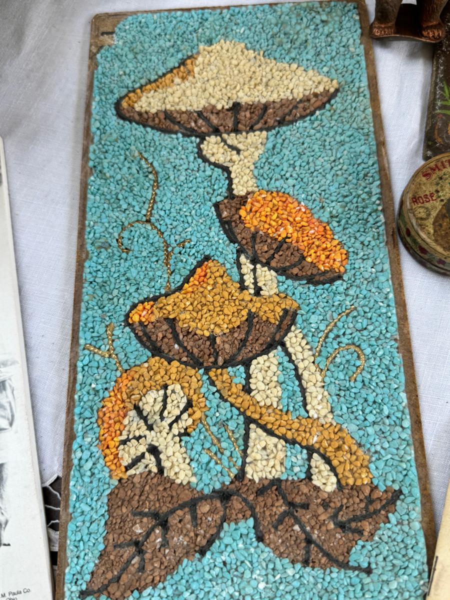 New vintage Wee Bakerie oven, Gravel art Mushroom, Needlework seat