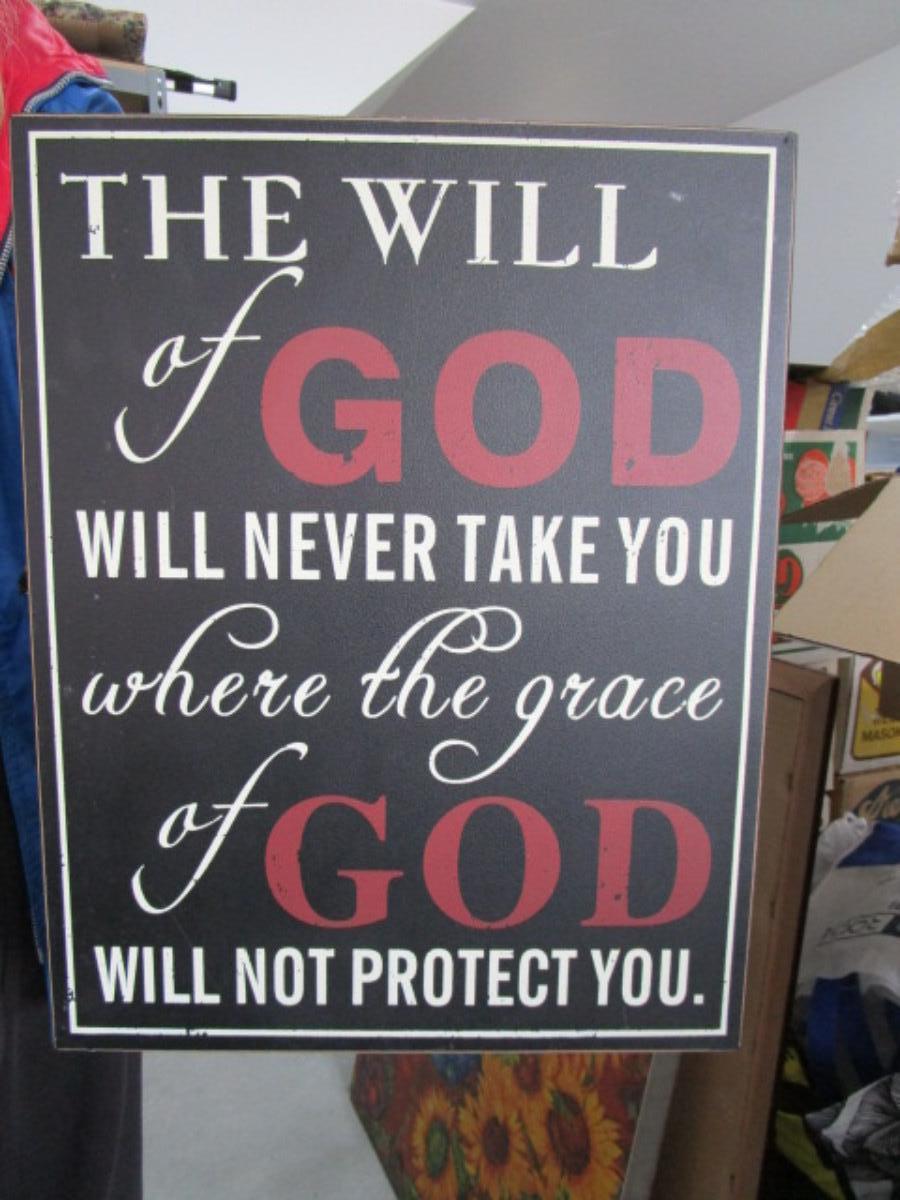 15-3/4" x 20" x 1" deep, Message: "The Will of God Will Never Take You Where the Grace of God Will Not Protect You"