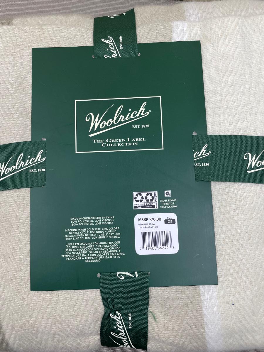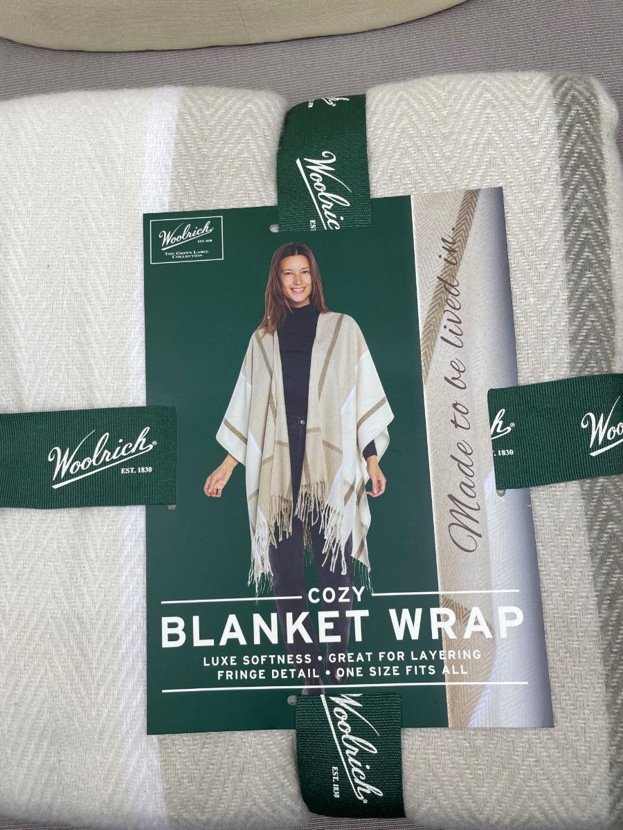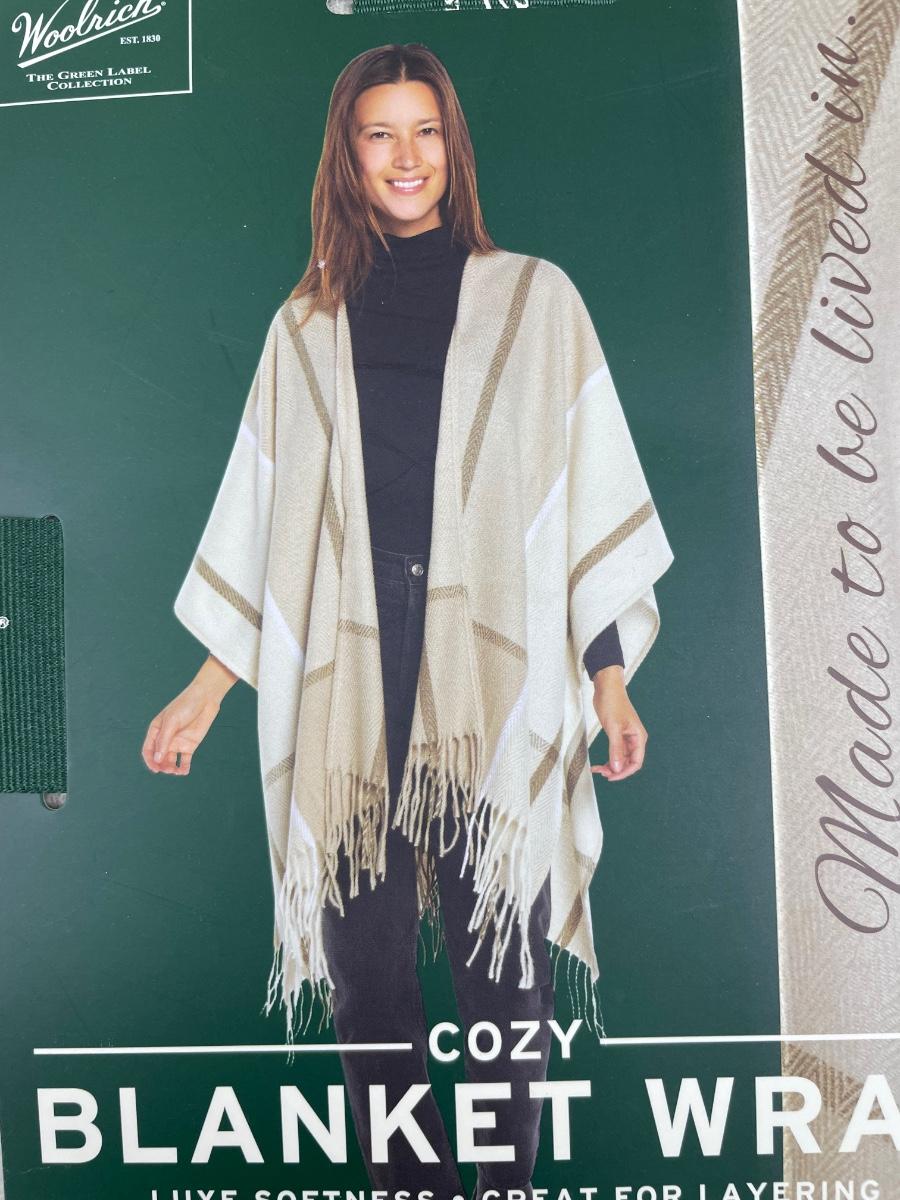 New Woolrich Blanket Wrap with Fringe Taupe/Tan