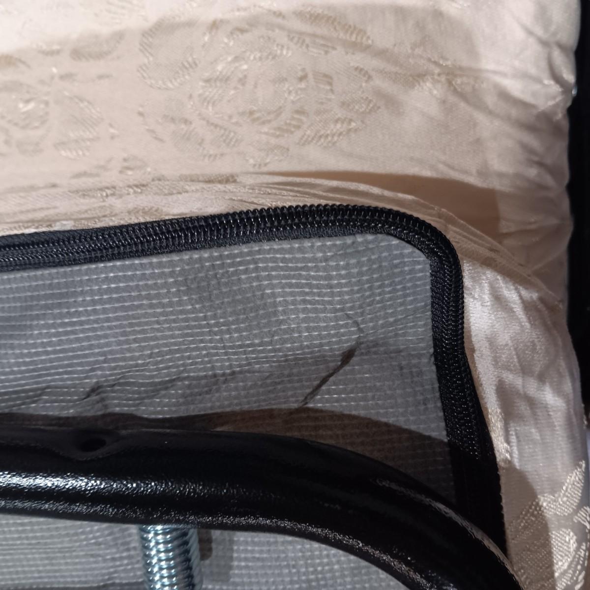 THE CUSHIONS AND MATTRESS ARE SLIP COVERED.