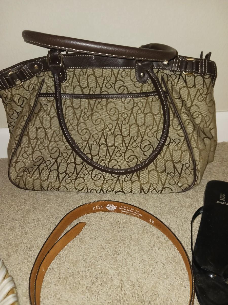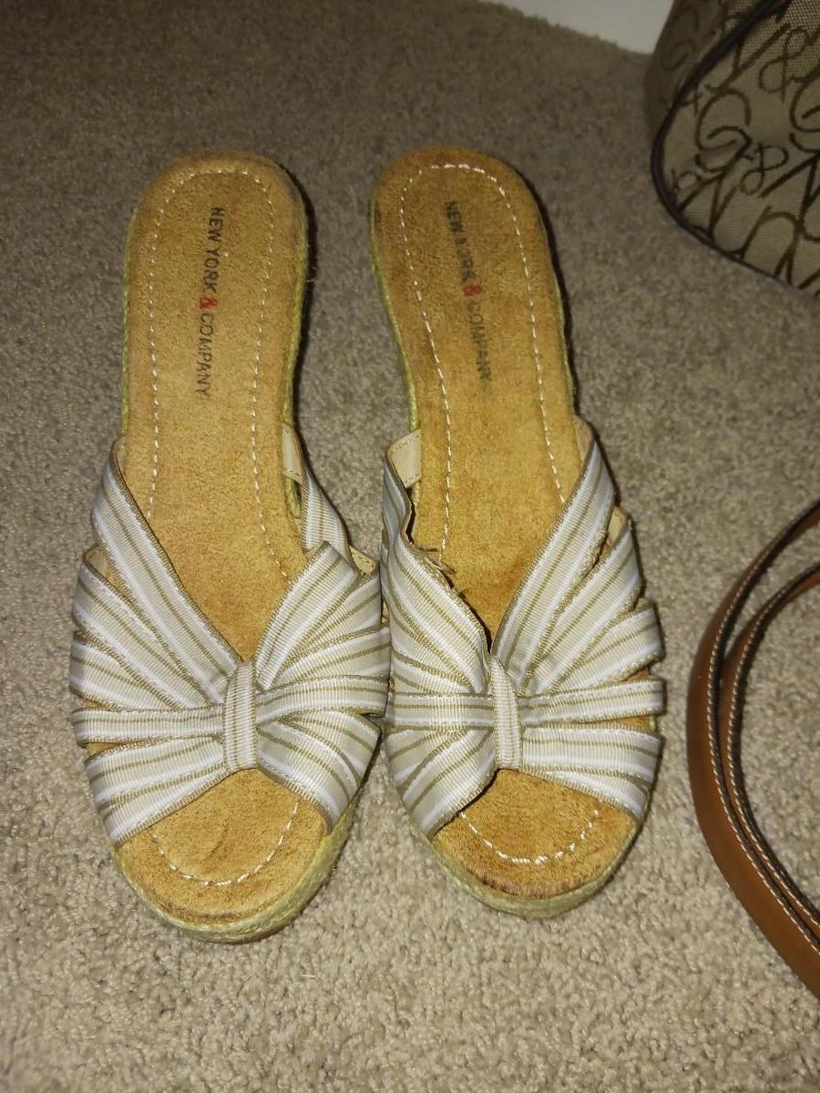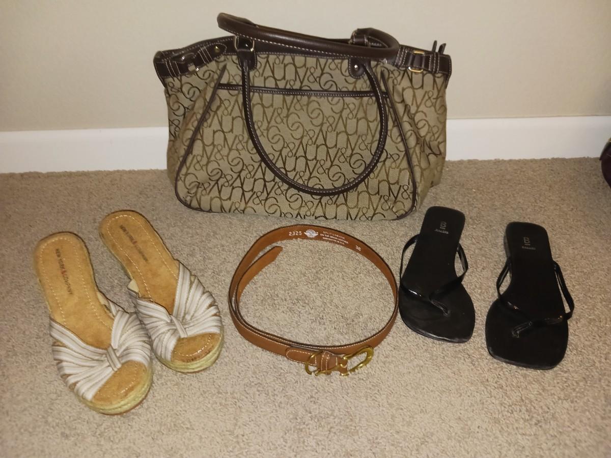 NEW YORK & CO PURSE, LEATHER BELT & 2 PAIRS OF SHOES (7)