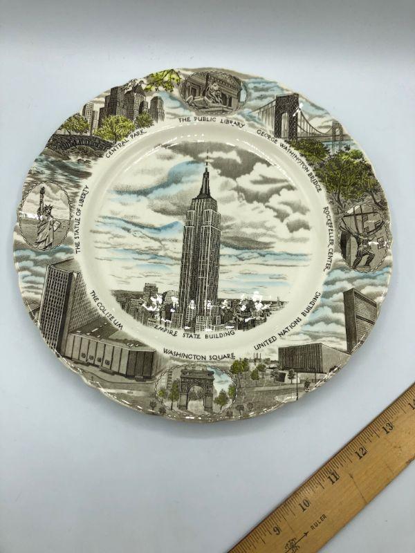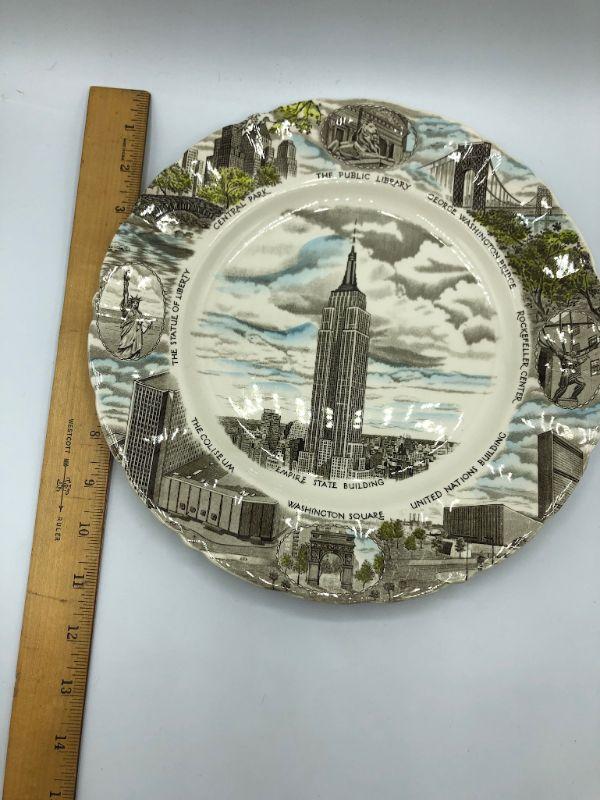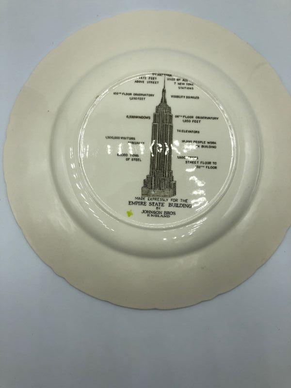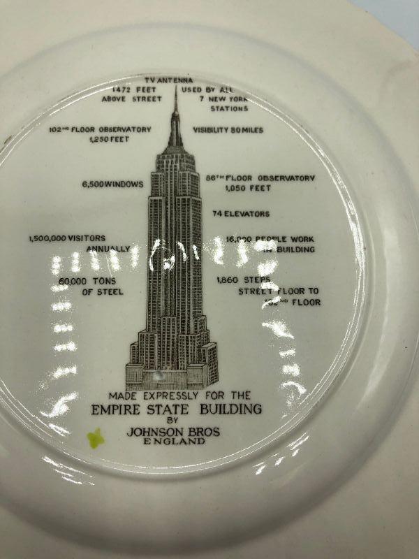 Vintage collector's souvenir plate from the Empire State Building in New York. Has building facts on the back side of plate. Good vintage condition. Made by Johnson Bros.