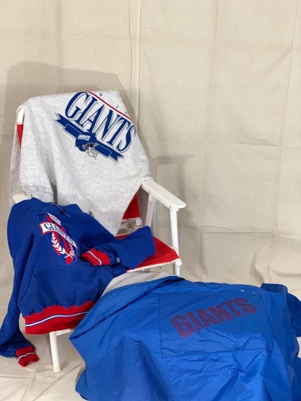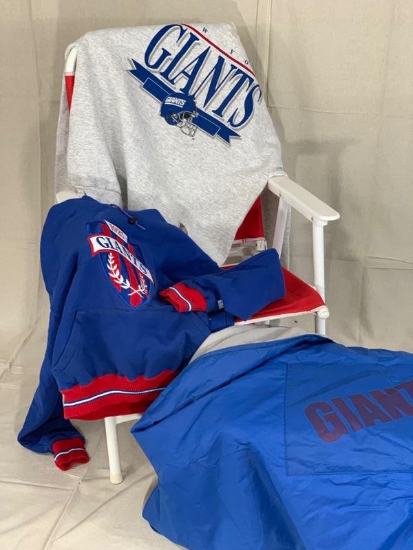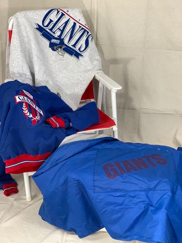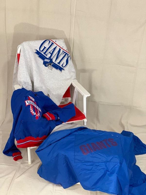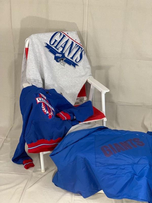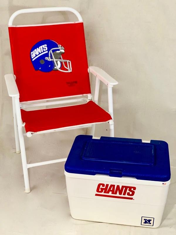 Everyone loves a good tailgate party and now you can have a chair and cooler with the New York Giants logo on them with sweat shirts and rain poncho. Local Pickup Only.