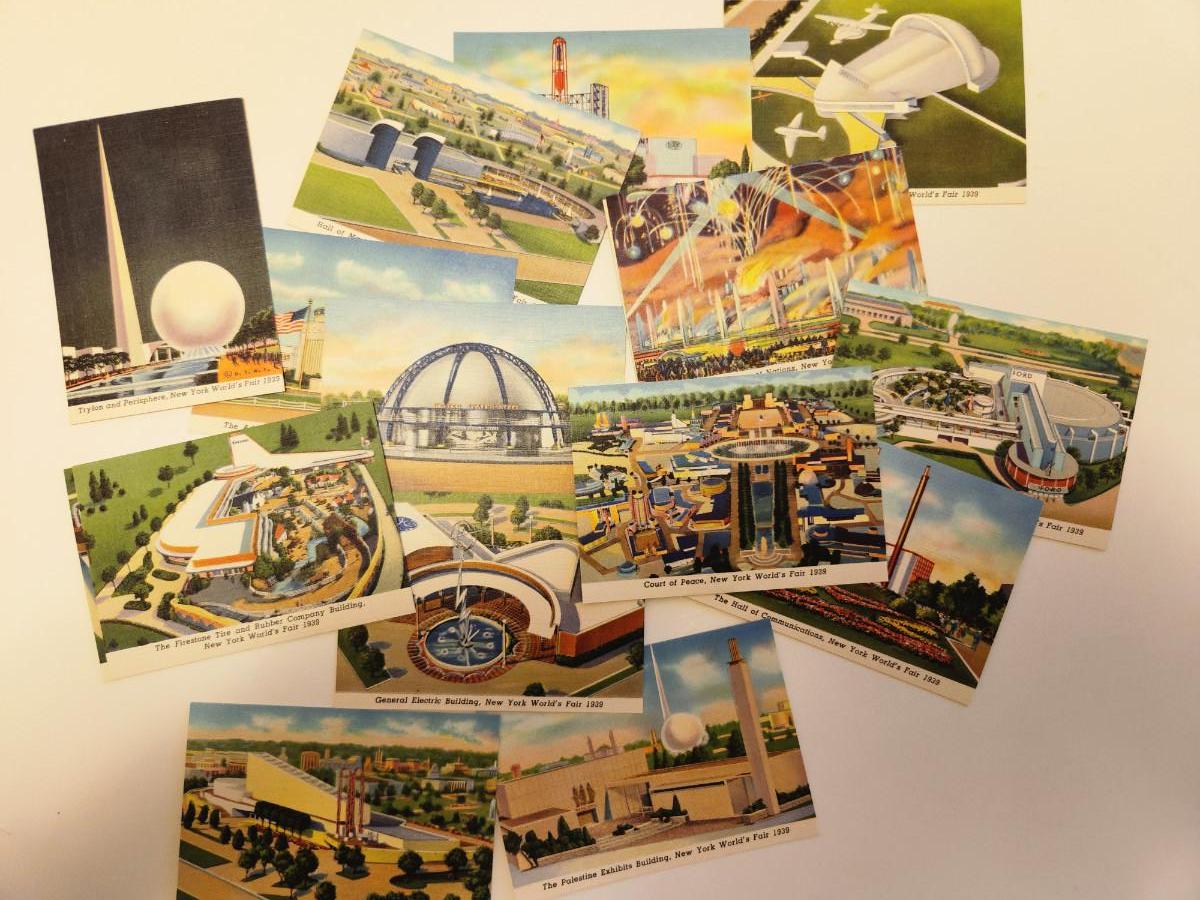This auction lot is for a set of New York World's Fair Miniature Postcards. Many souvenirs were produced for the iconic New York World's Fair - one of the sweetest is this small set of linen postcards in its sleeve. The set contains all of the original 16 cards highlighting the best of the Fair. Postcards appear in good condition.
