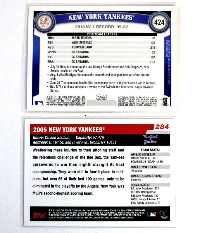 NEW YORK YANKEES Baseball Cards Set - 2006 Topps #284, 2011 Topps #424 MINT