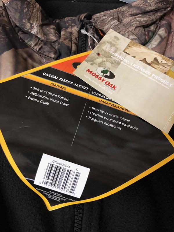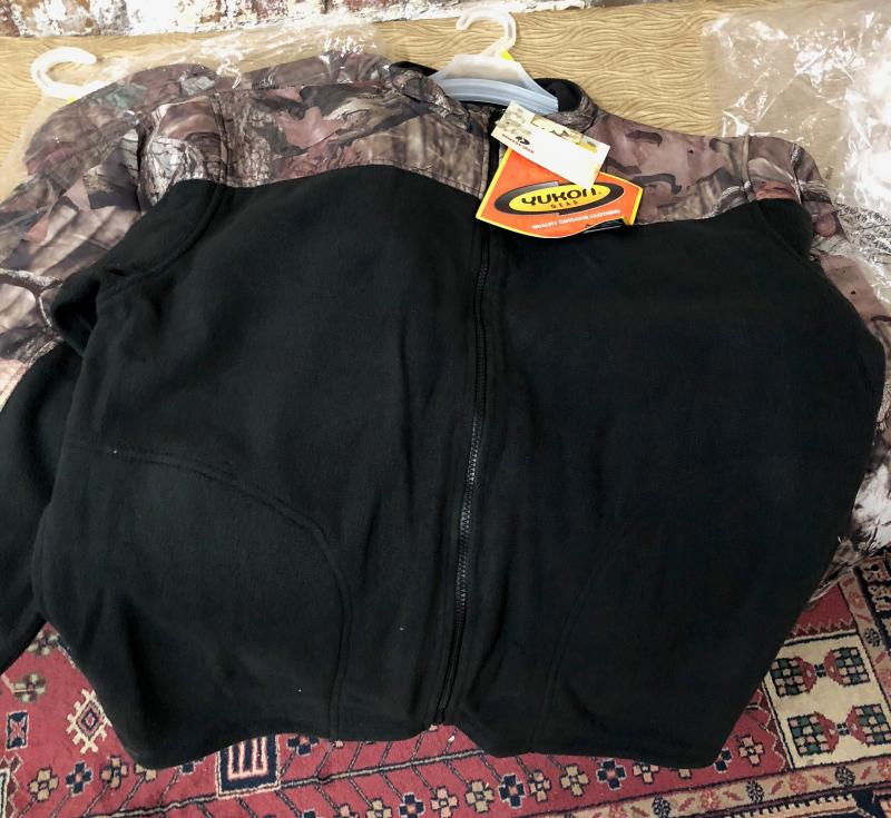 Just in time for the season in black and camo from Yukon and Mossy Oak a couple of Large size fleece jackets...with tags...