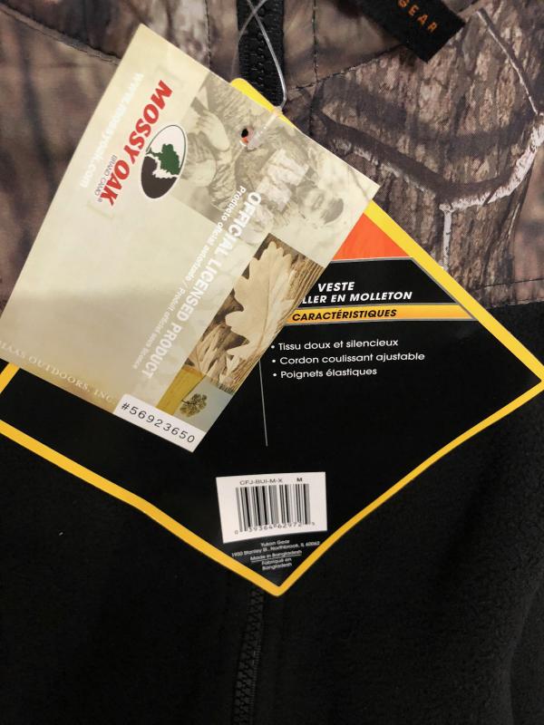 Just in time for the season in black and camo from Yukon and Mossy Oak a couple of Medium size fleece jackets...with tags...