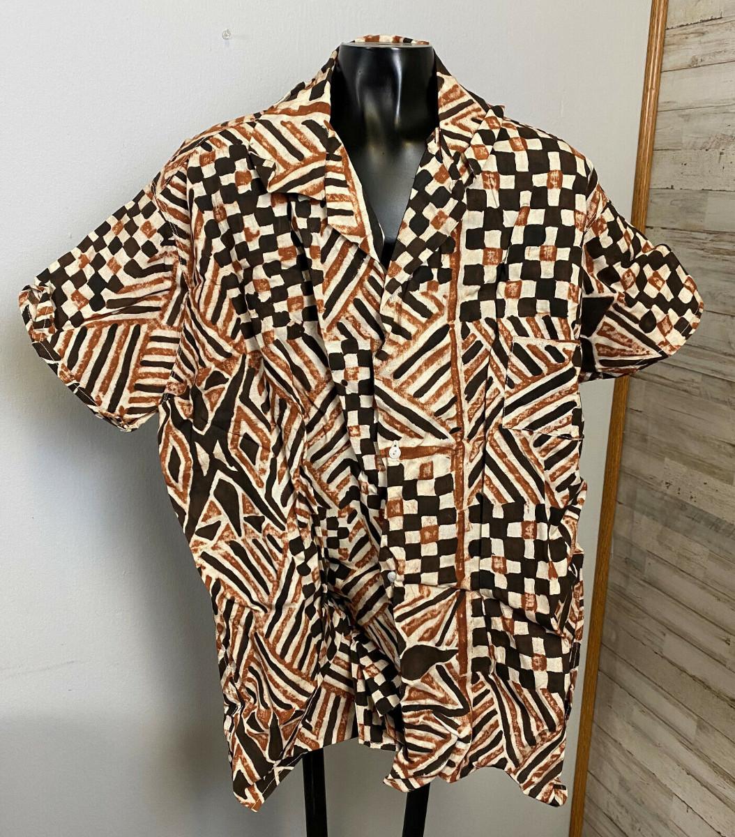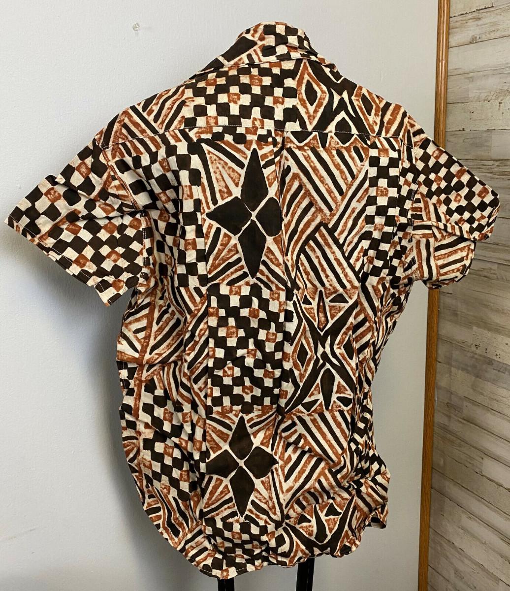 This estate find dates back to 1959...from New Zealand, this print Pacific Islands "Aloha" shirt was found among a grouping of Maori souvenirs...Appears to be homemade...Excellent condition...just some wrinkles and creases from storage..needs an iron..Unbranded...Size Medium..Adult Men & Women...I believe it is made of cotton.