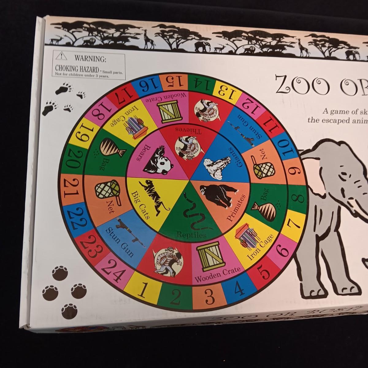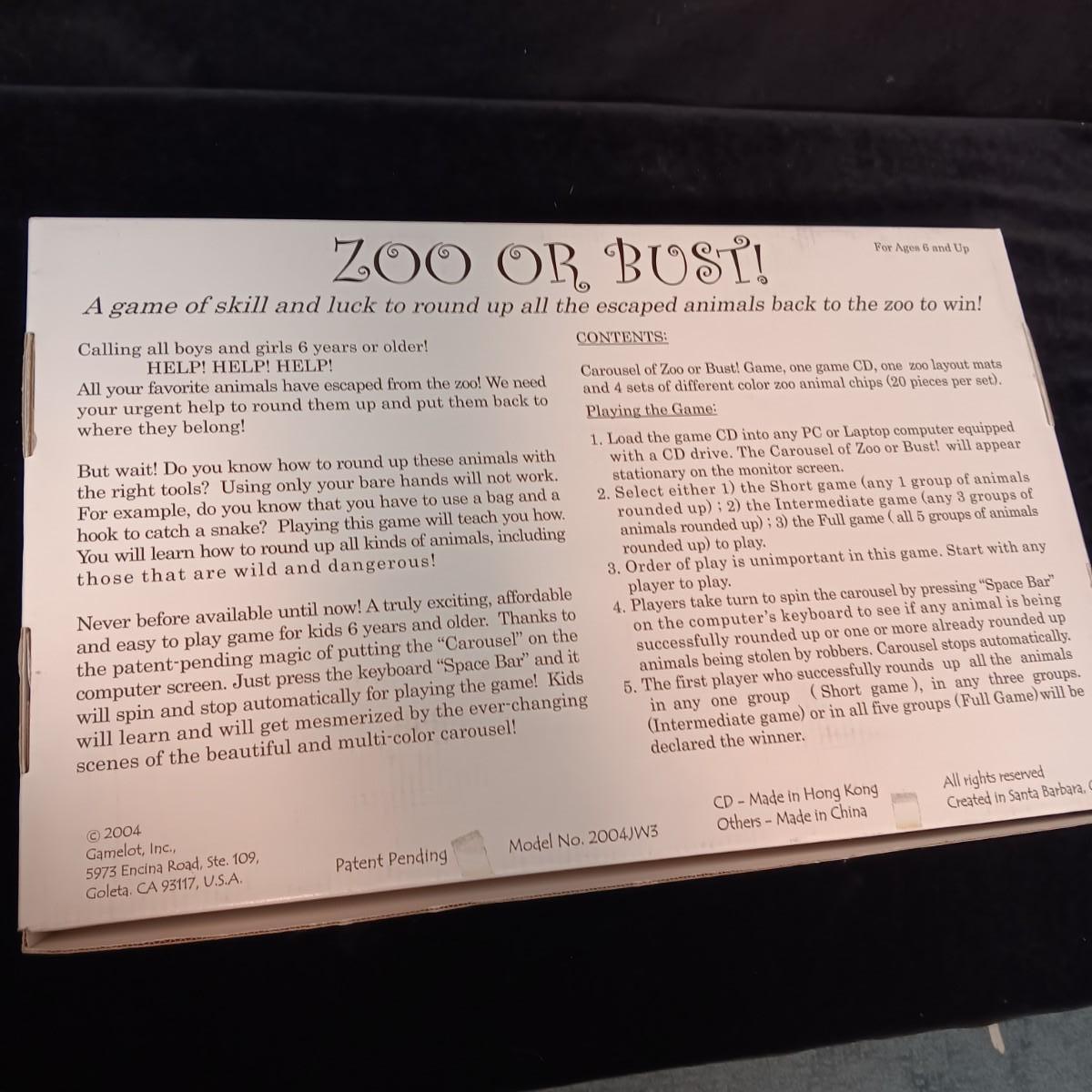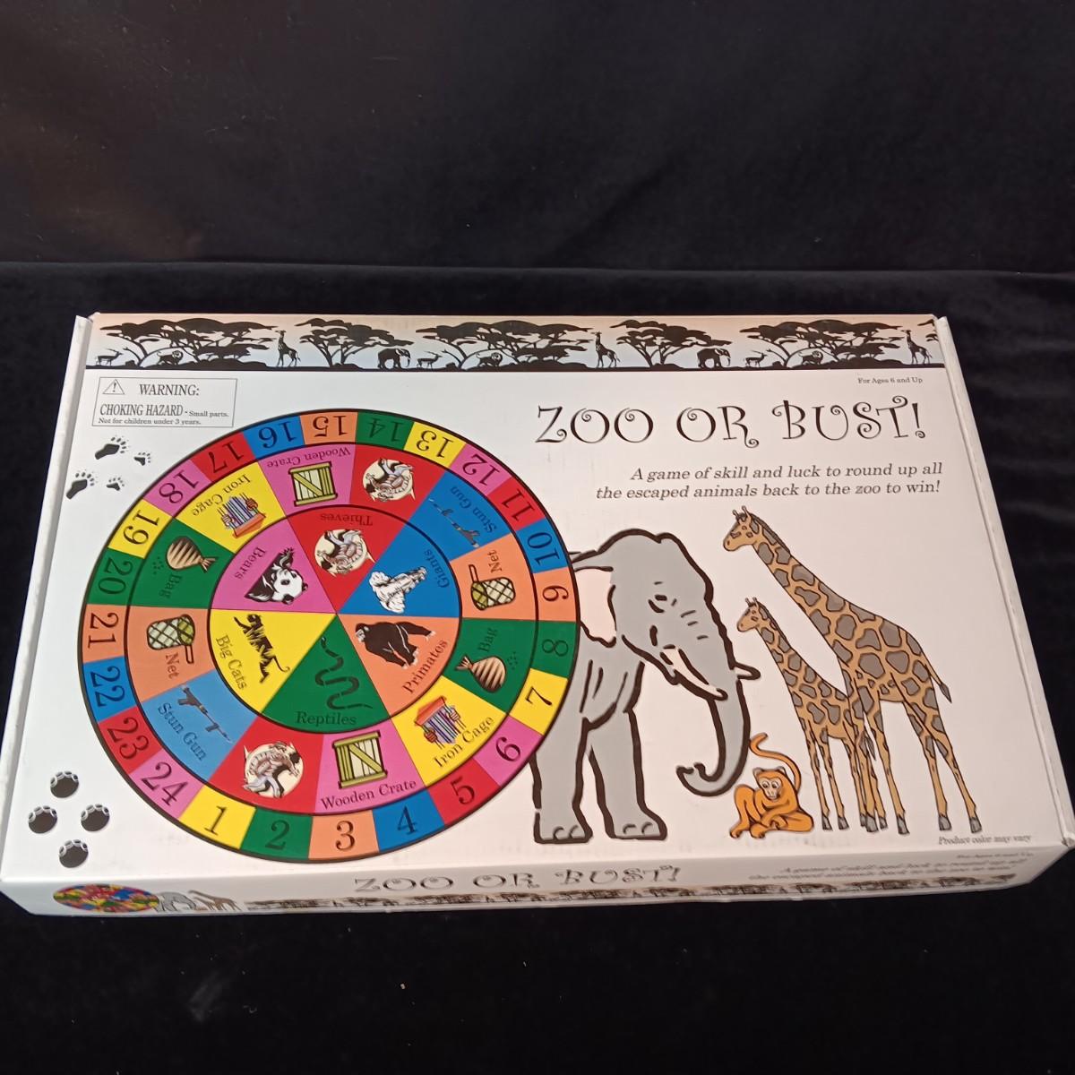NEW "ZOO OR BUST" A GAME OF SKILL AND LUCK TO ROUND UP ALL THE ESCAPED ANIMALS BACK TO THE ZOO TO WIN!