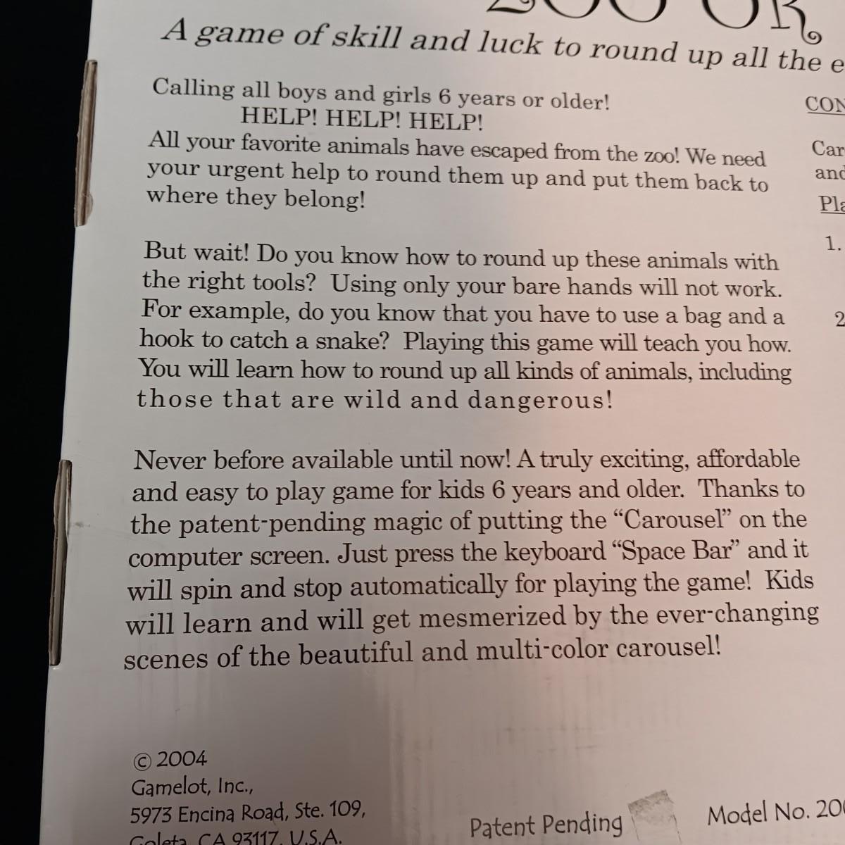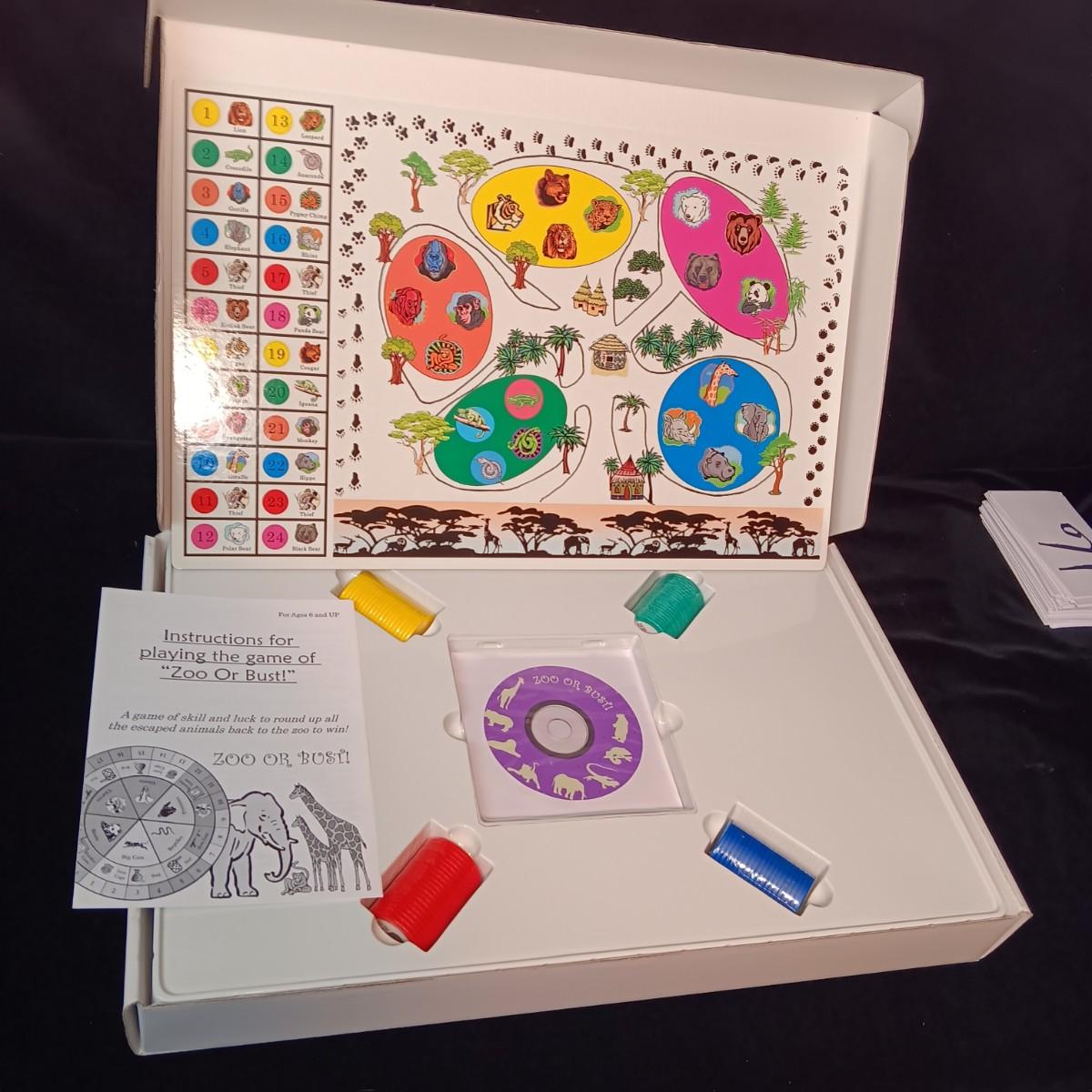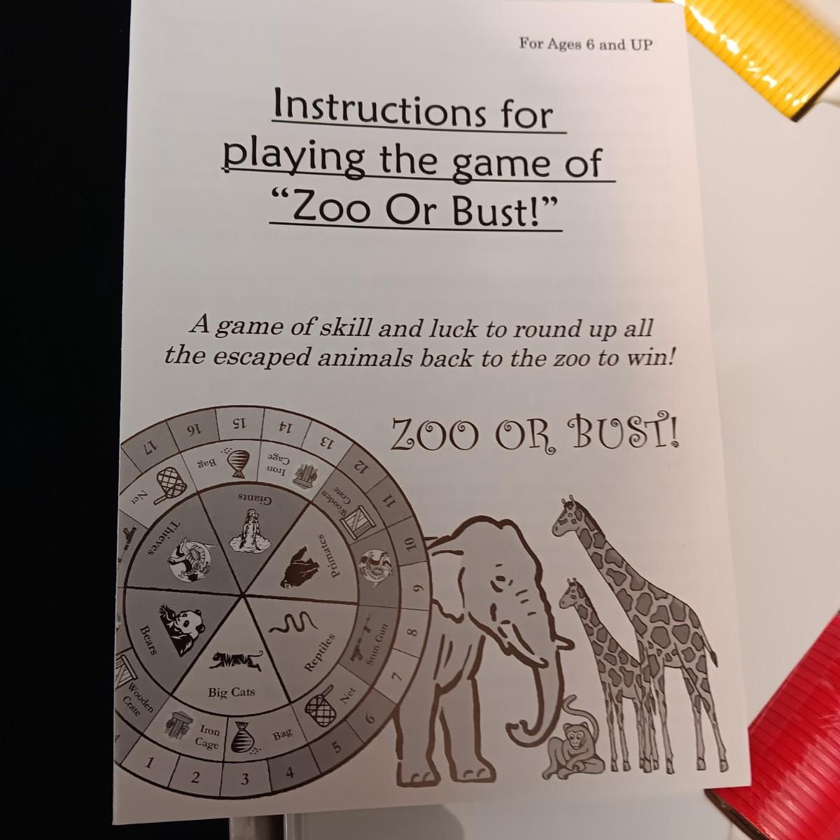 NEW "ZOO OR BUST" A GAME OF SKILL AND LUCK TO ROUND UP ALL THE ESCAPED ANIMALS BACK TO THE ZOO TO WIN!