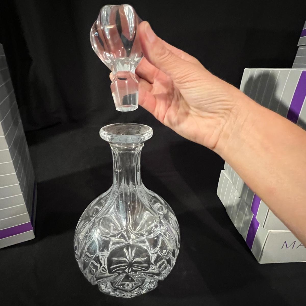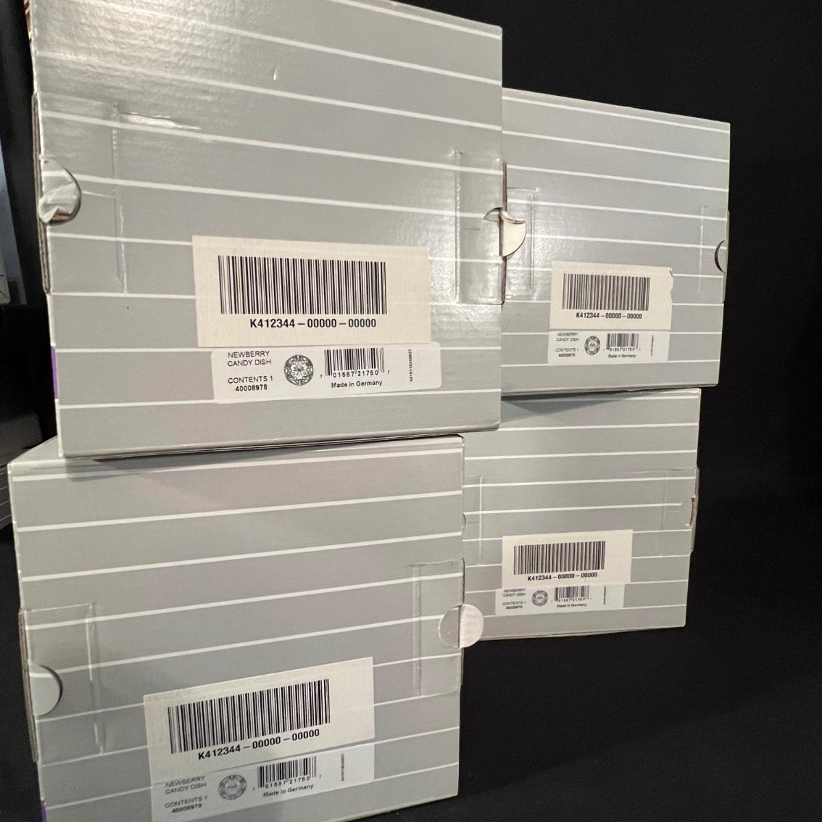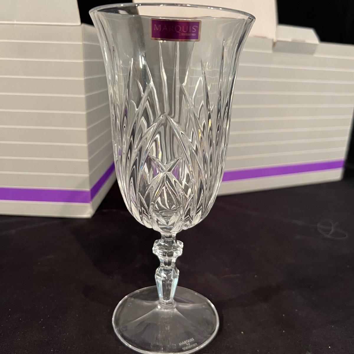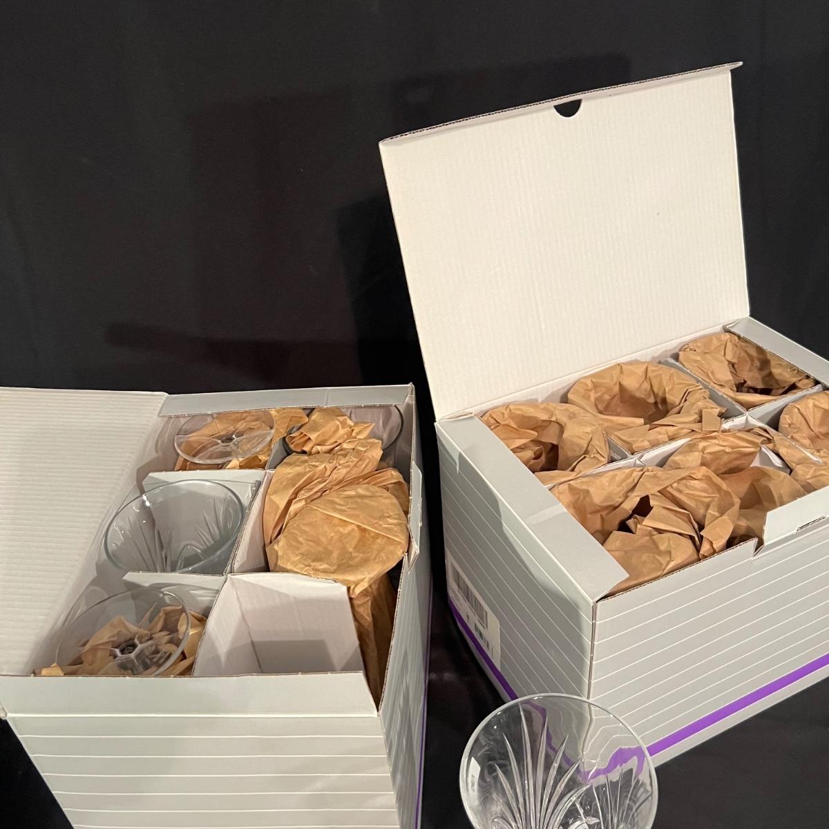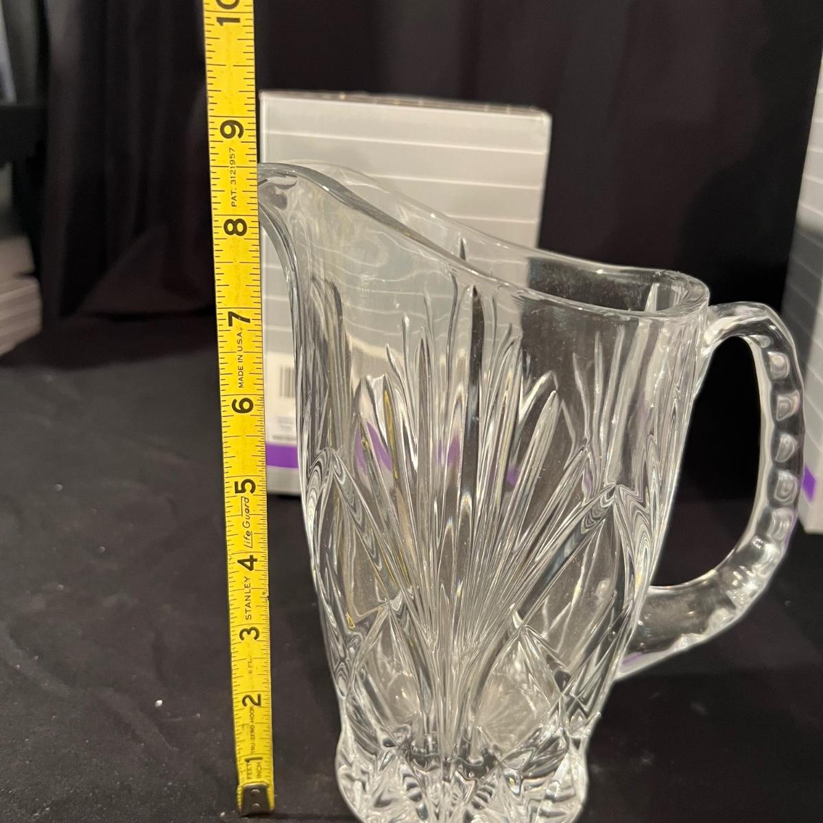 Over 35 pieces of Waterford crystal in their Newberry pattern. Lot includes pitcher, decanter, bowls, tumbler and iced beverage glasses plus more. Most items appear to be new in box; decanter and pitcher were not stored in their boxes and were out on display. See images for sizes and full inventory and note that there are duplicates of some items. The iced beverage and tumbler glasses are in packs of 6 and there are a total of 12 of each.