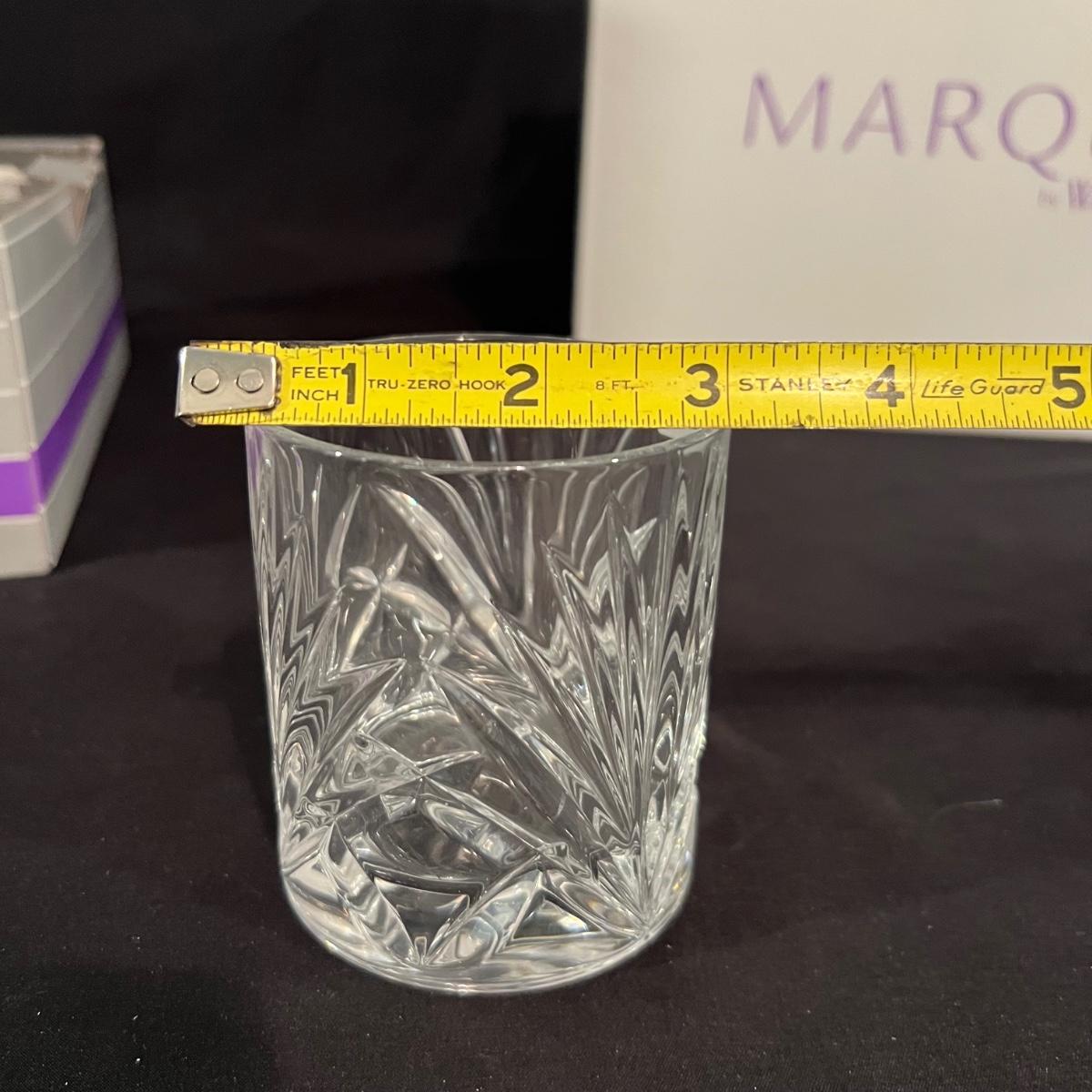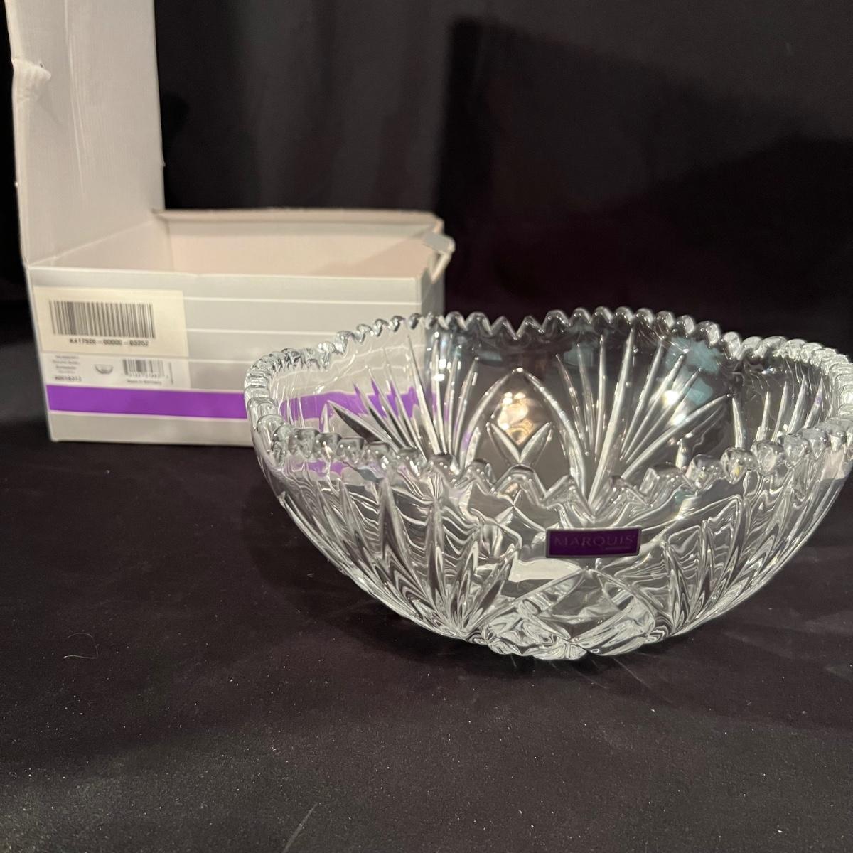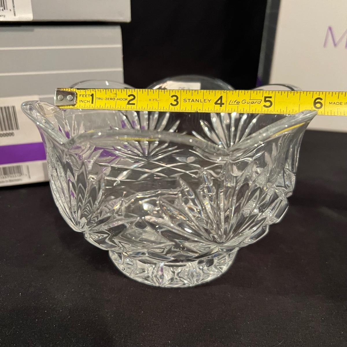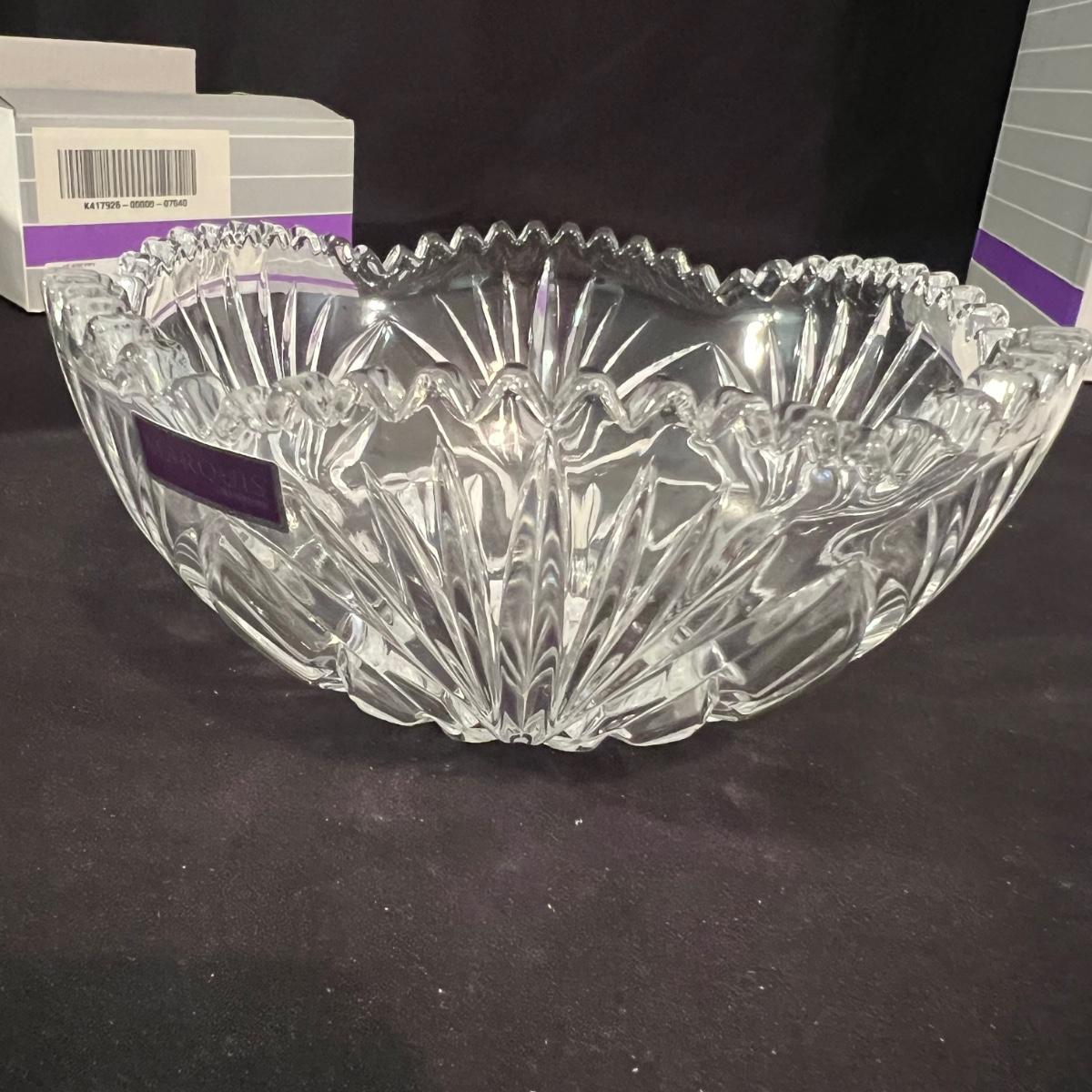 Over 35 pieces of Waterford crystal in their Newberry pattern. Lot includes pitcher, decanter, bowls, tumbler and iced beverage glasses plus more. Most items appear to be new in box; decanter and pitcher were not stored in their boxes and were out on display. See images for sizes and full inventory and note that there are duplicates of some items. The iced beverage and tumbler glasses are in packs of 6 and there are a total of 12 of each.