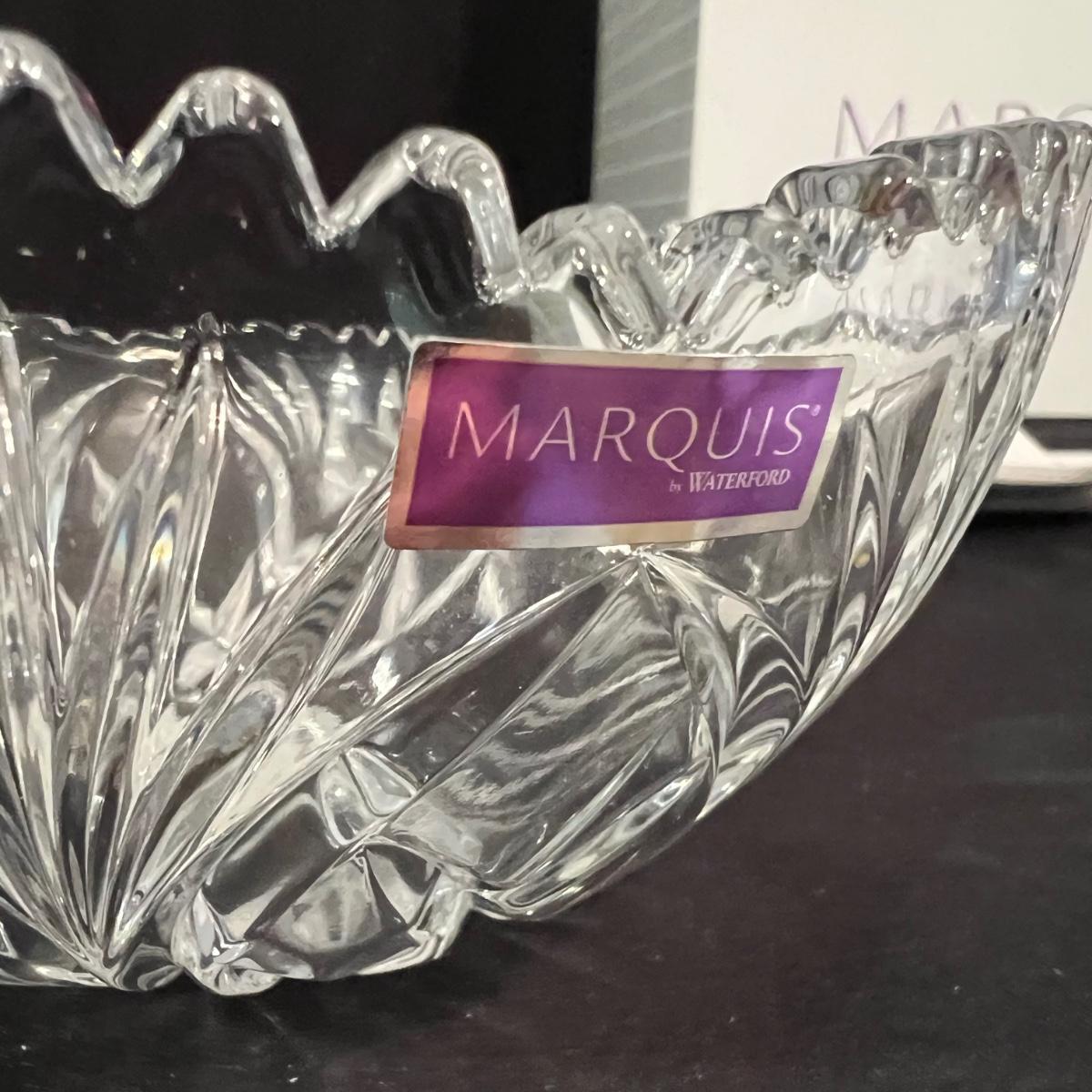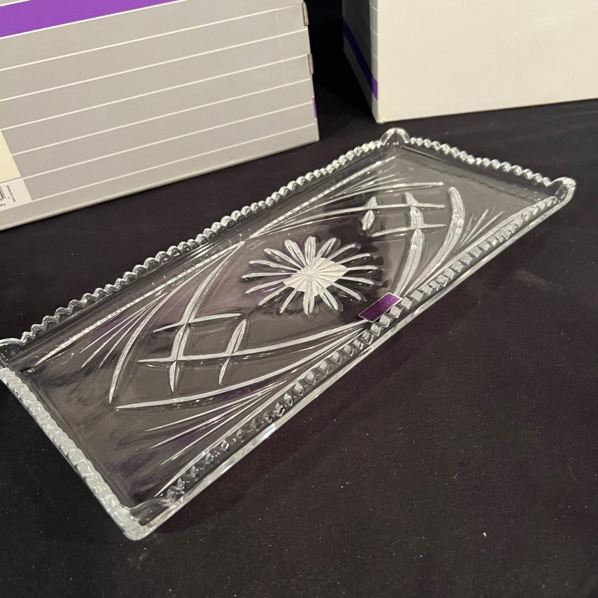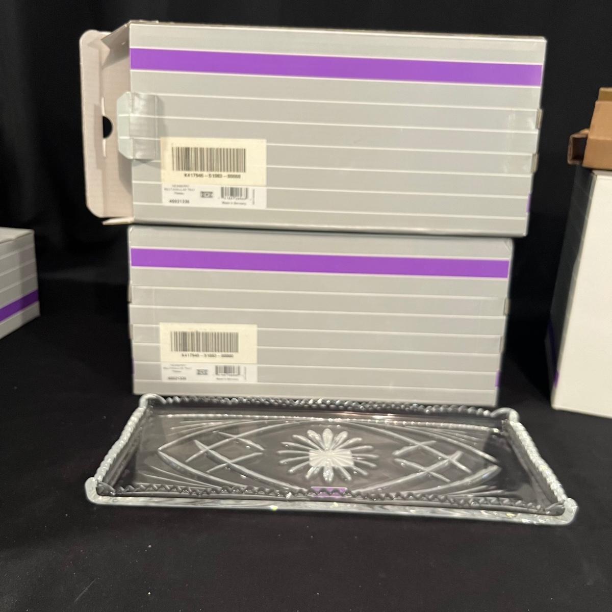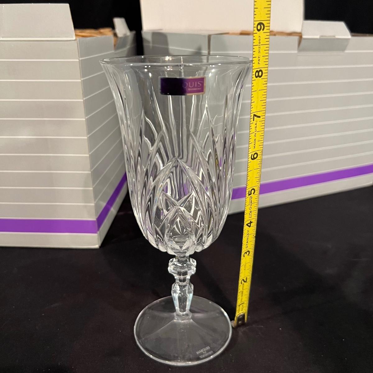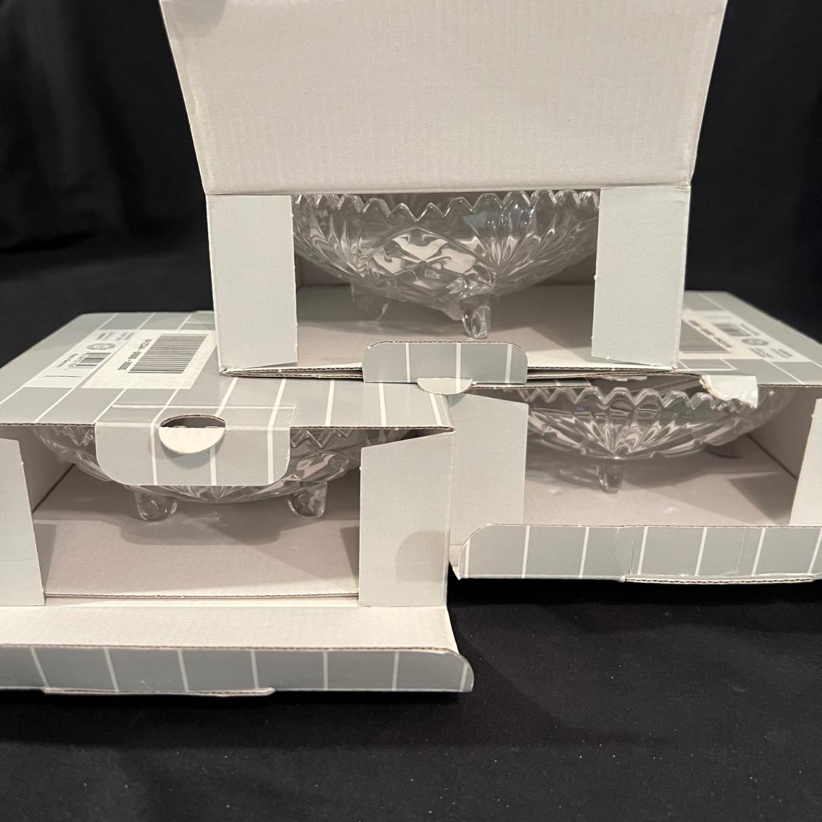 Over 35 pieces of Waterford crystal in their Newberry pattern. Lot includes pitcher, decanter, bowls, tumbler and iced beverage glasses plus more. Most items appear to be new in box; decanter and pitcher were not stored in their boxes and were out on display. See images for sizes and full inventory and note that there are duplicates of some items. The iced beverage and tumbler glasses are in packs of 6 and there are a total of 12 of each.
