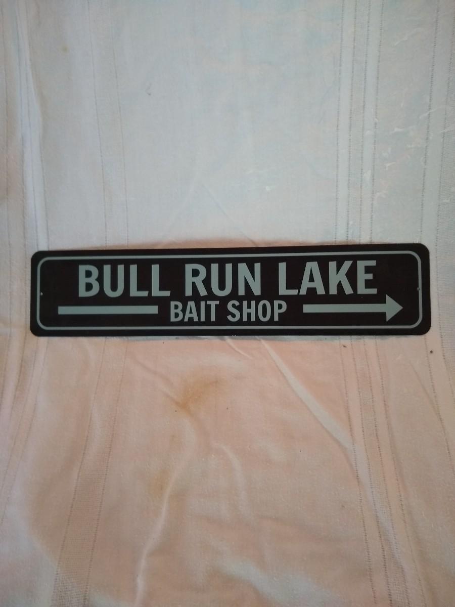 Newer Bull Run Lake Bait Shop Sign Metal.