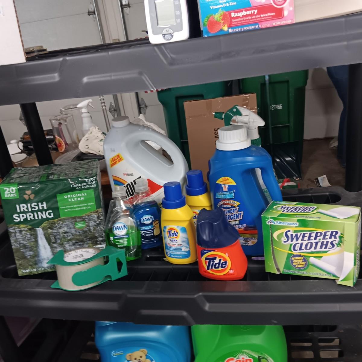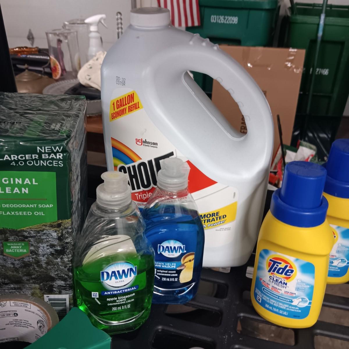 NEW/FULL SHOUT AND LAUNDRY DETERGENT, 19 BARS OF IRISH SPRING SOAP AND MORE