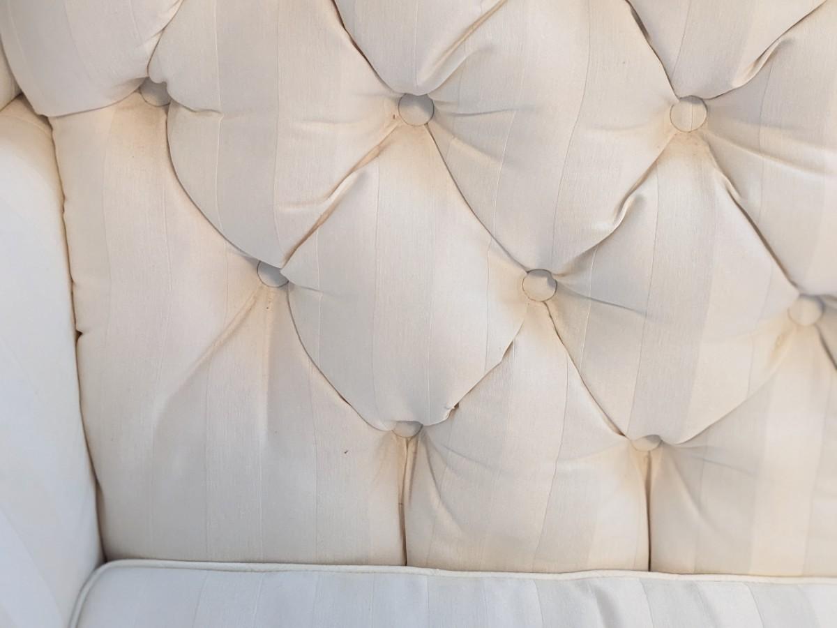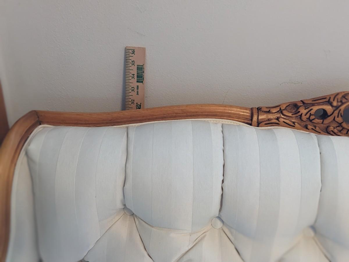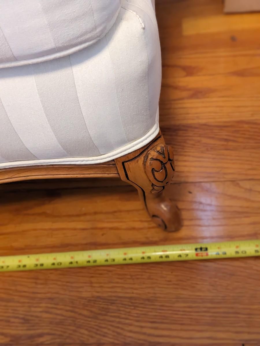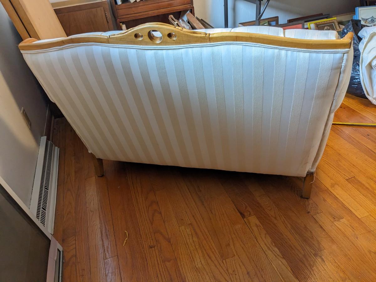 Excellent condition, cushions are very comfortable, beautiful off-white upholstery. joints tight, nice woodwork.