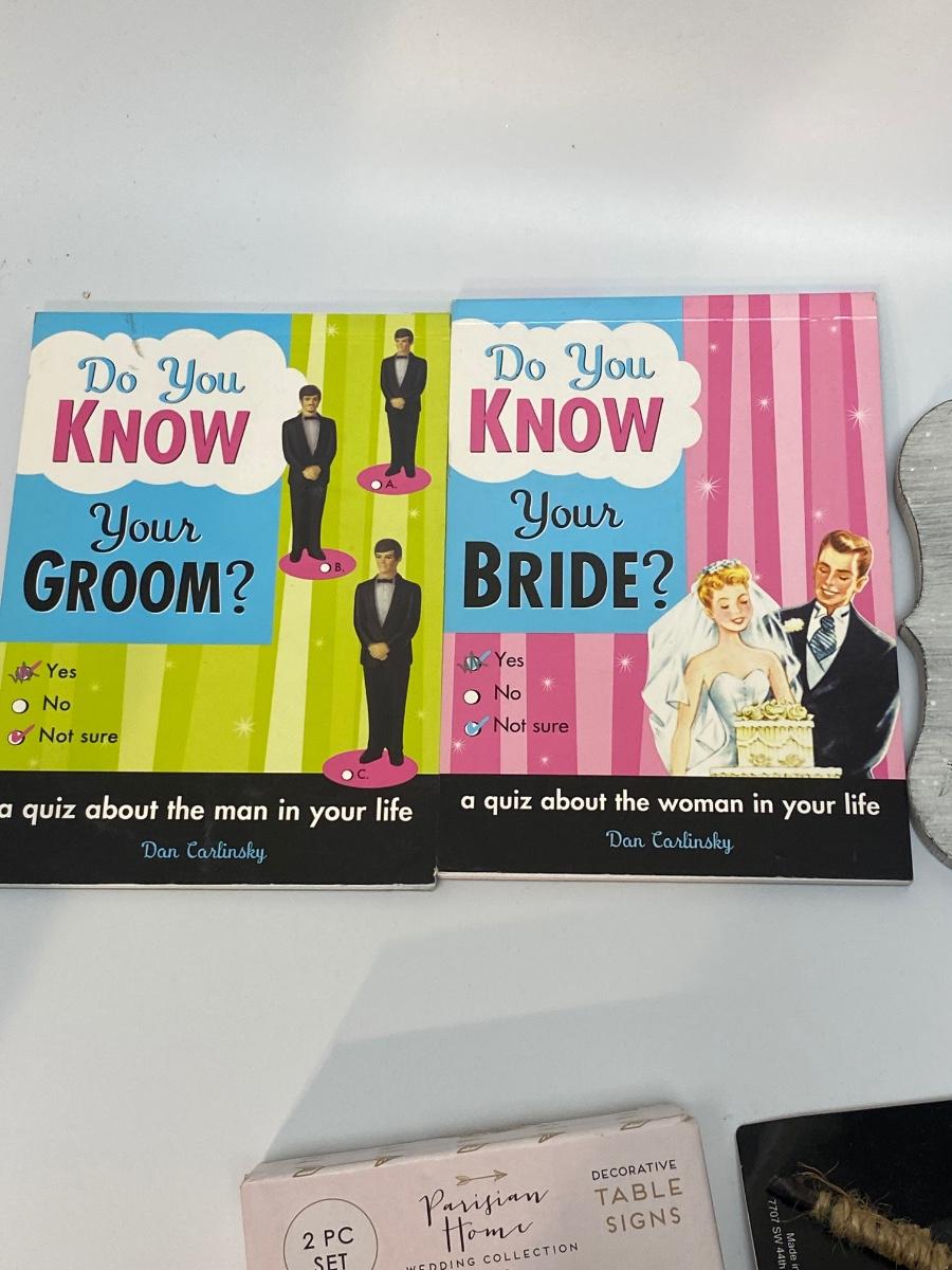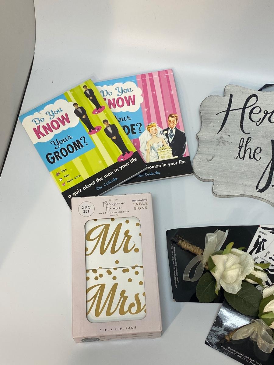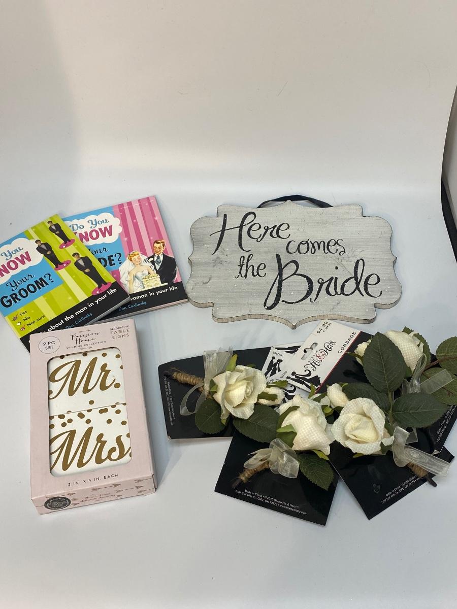 Newly Wed Bride and Groom Lot of Corsages, Table Signs, & More, there is no significant damage to the pieces and is in good useable condition. Check pictures for more details and for sizing.