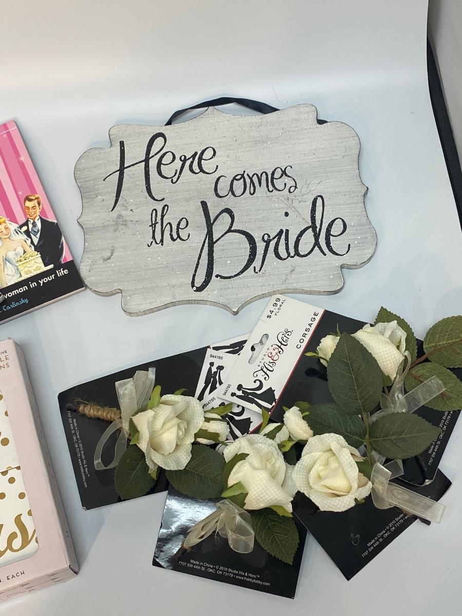 Newly Wed Bride and Groom Lot of Corsages, Table Signs, & More