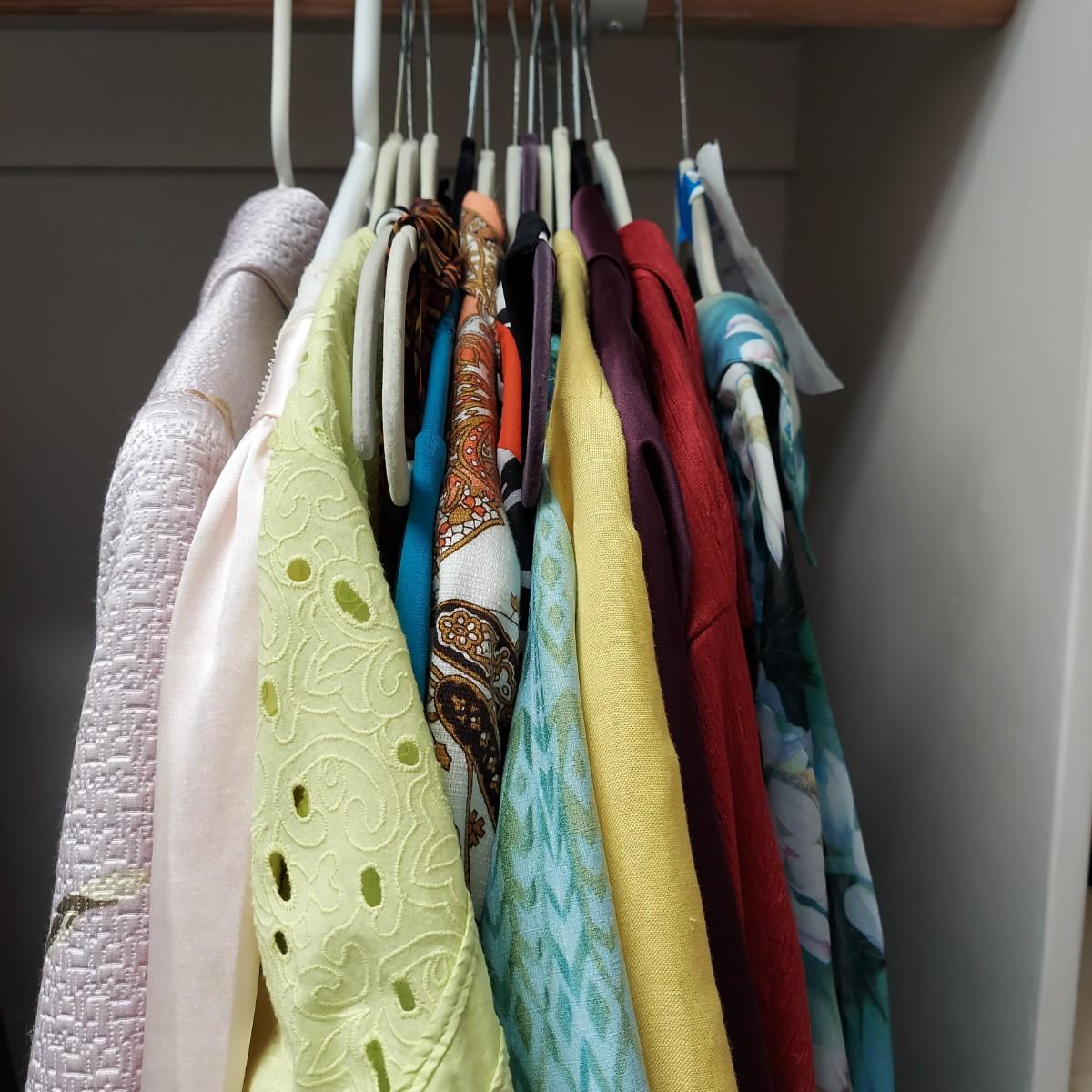 Lot includes a Christian Dior Nightgown, Neiman Marcus jacket and tops by Bob Mackie, Chicos, Isaac Mizrahi and more. Most are Size XL.