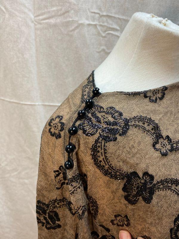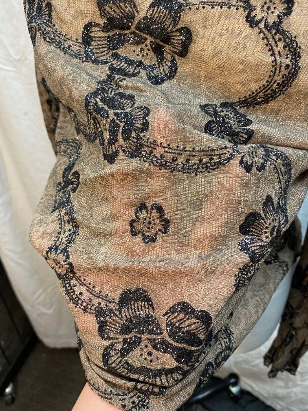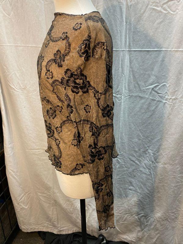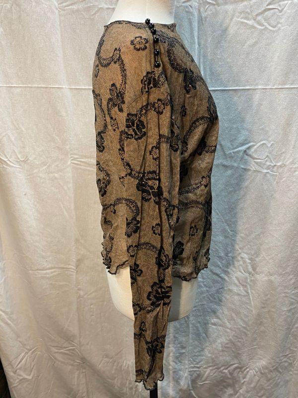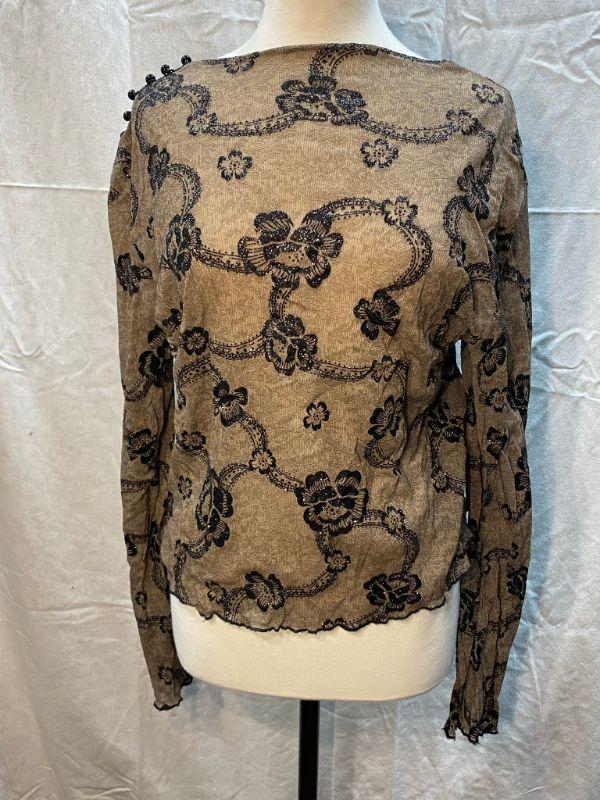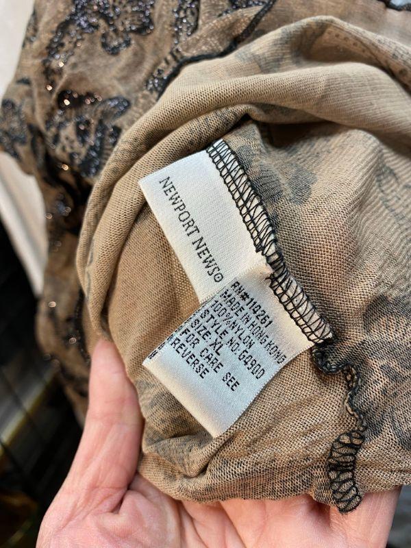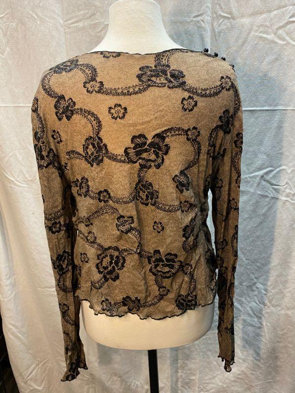 Newport News Sheer Nude & Black Floral Lace Blouse Shoulder Buttons Size XL YD#020-1220-02082