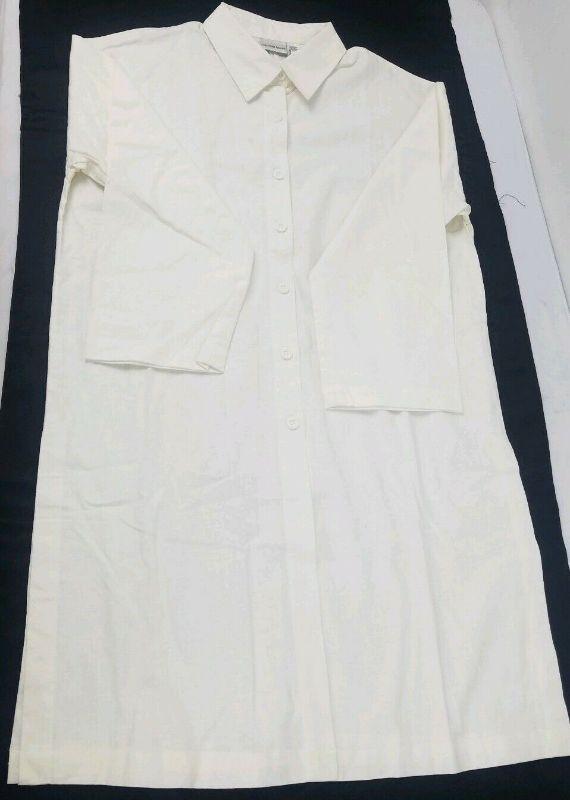 Newport News Women's Linen Cotton Blend Long Sleeve Shirt Dress sz 14 Cream