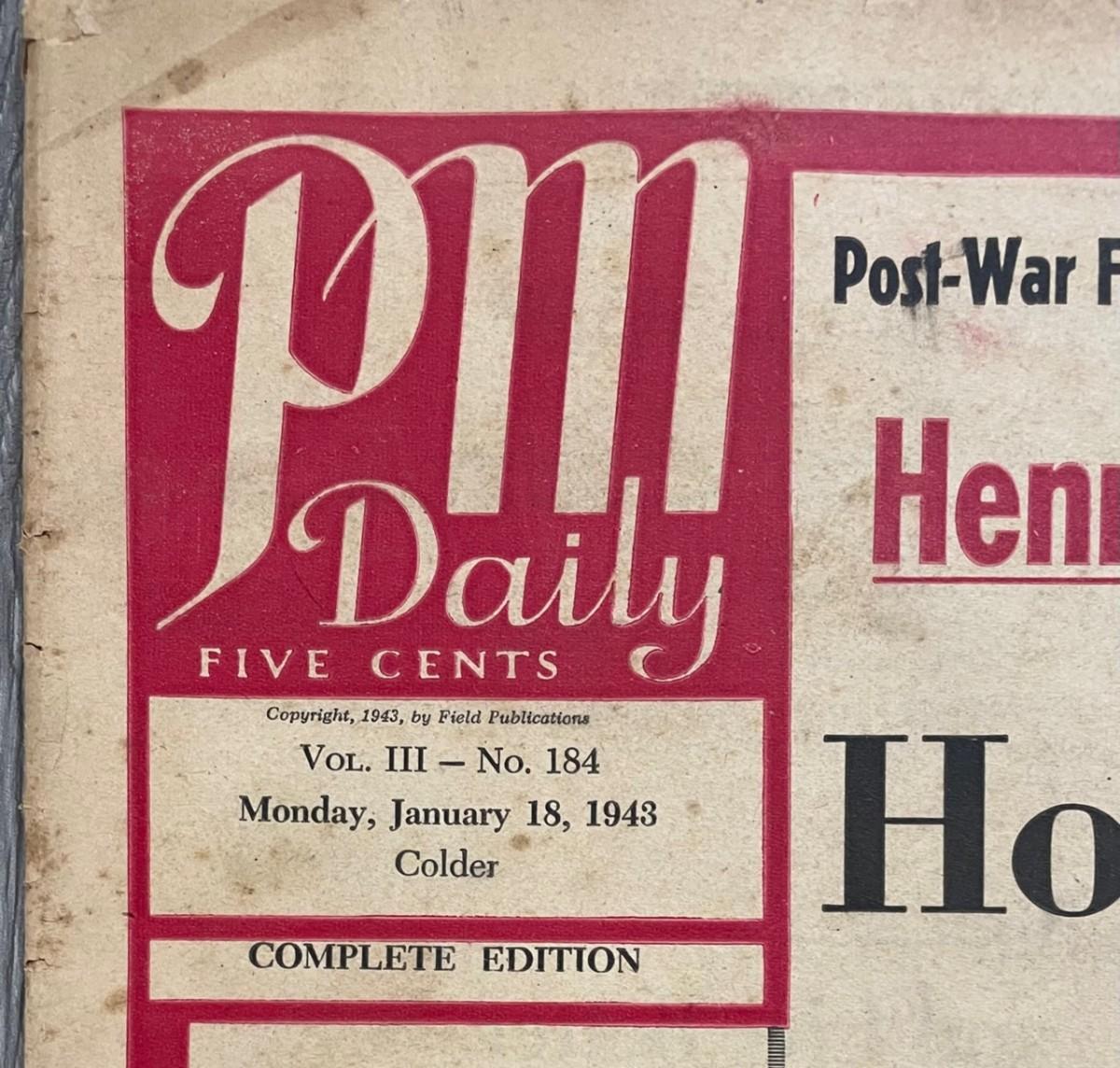 Description: WW2 Newspaper/ PM Daily March 13, 1942 VOL. 11- No. 192/ Our good friends in Brazil Riot against NazisMeasurement approximate:Material: Paper