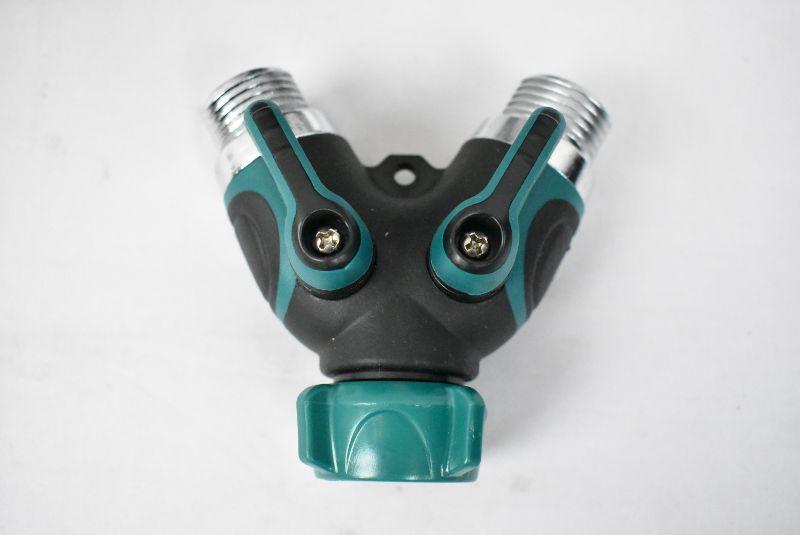 NEX 2 Way Y Hose Connector- Faucet Splitter, Metal Body, Rubberized Grip - New