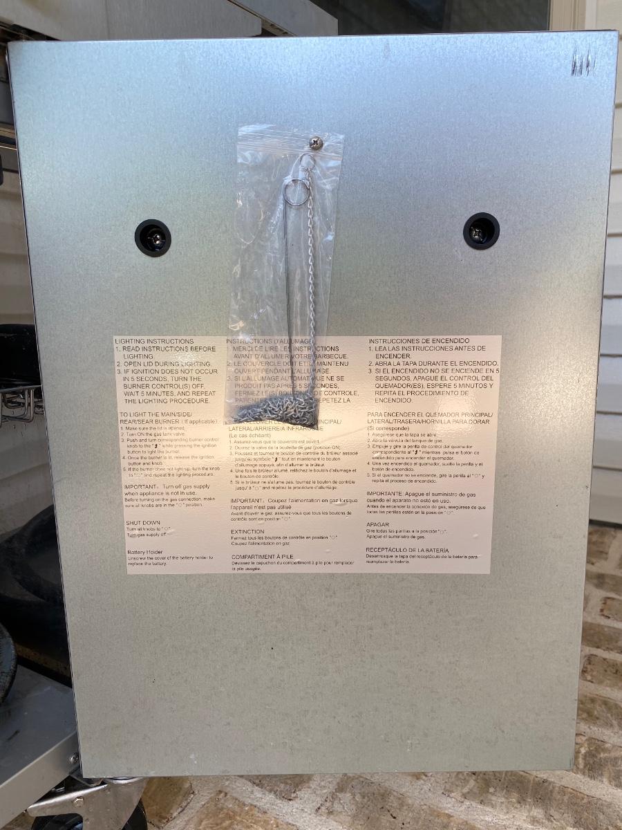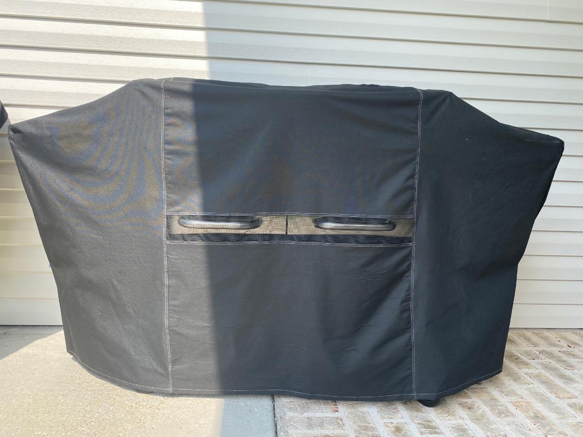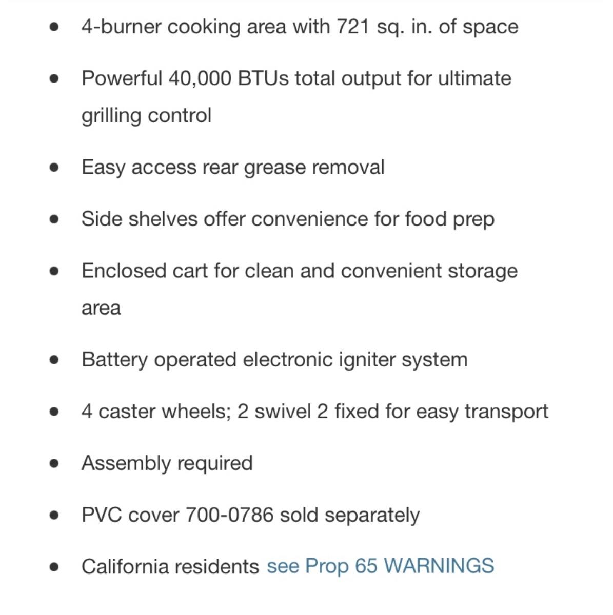 This barely used griddle top grill has 4 burners, lots of prep space, bottle opener and cover. Complete item specifics are posted in the photos.