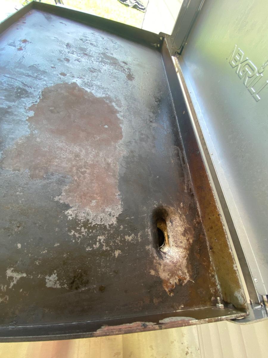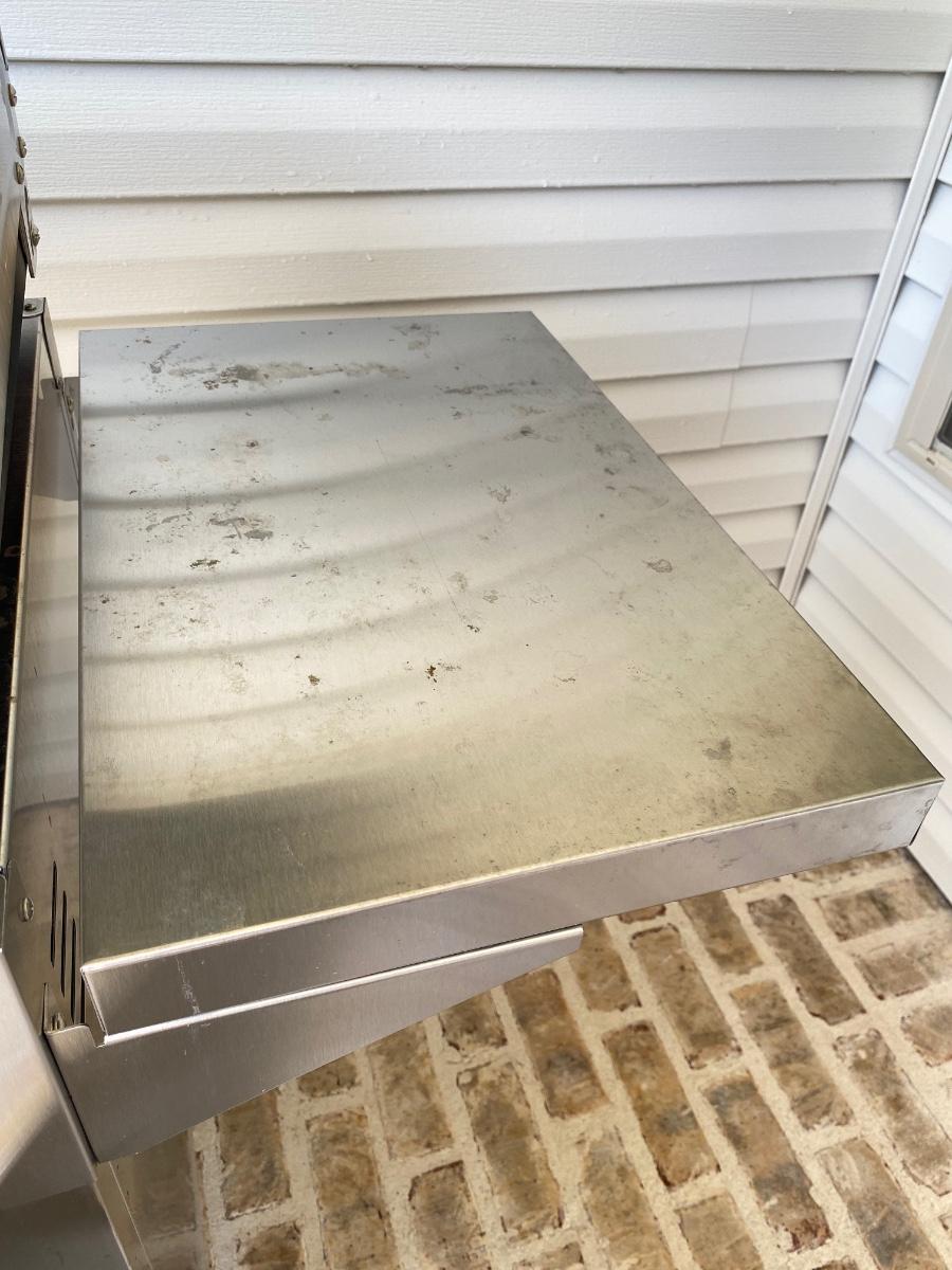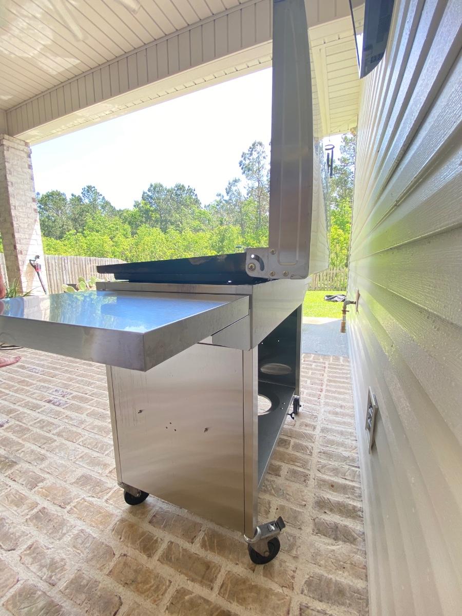 This barely used griddle top grill has 4 burners, lots of prep space, bottle opener and cover. Complete item specifics are posted in the photos.