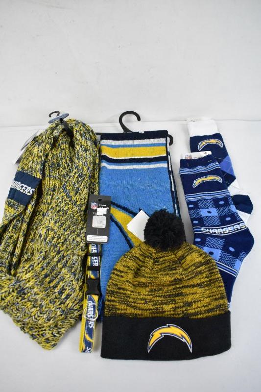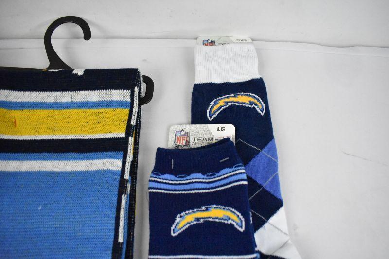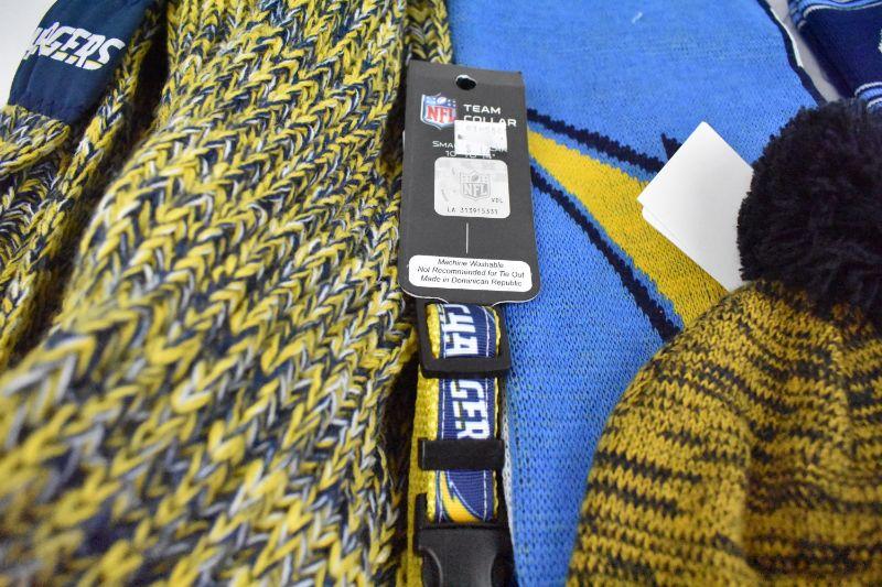 NFL Chargers: 2 Scarves, Beanie, Small Dog Collar, 2 Socks - New