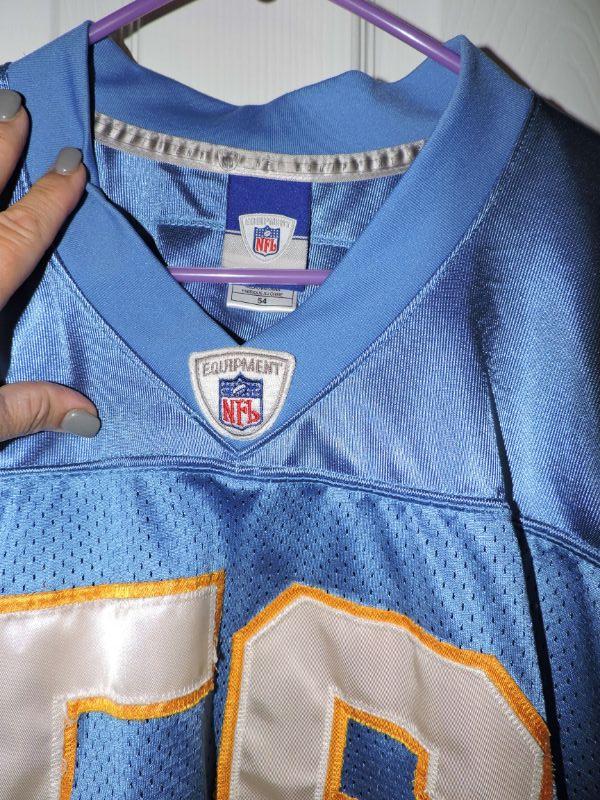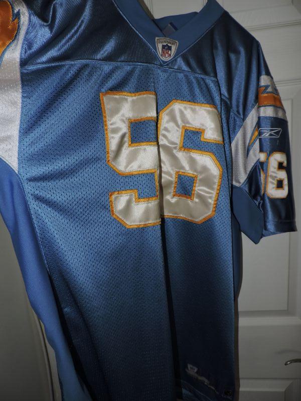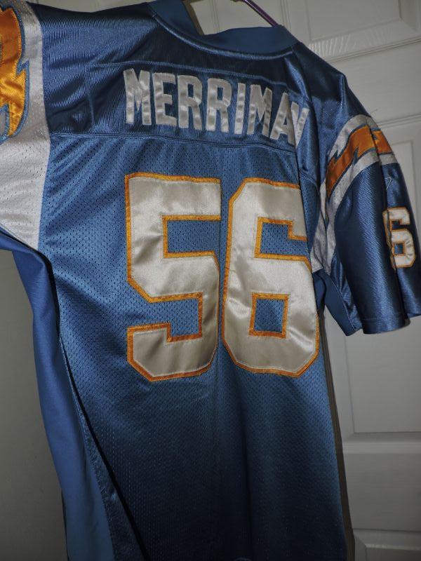 NFL Jersey - Chargers #56 Merriman Size 54 **Please read Terms and Conditions before placing a bid. Pick up is Thursday, August 15, 2019 from 4pm to 7pm or Sunday, August 18 from 11am-2pm in Mullica Hill. All sales are final. All sales are as is, where is. Please review all photos. Any props included in photos are not included in listing. All measurements are approximate.