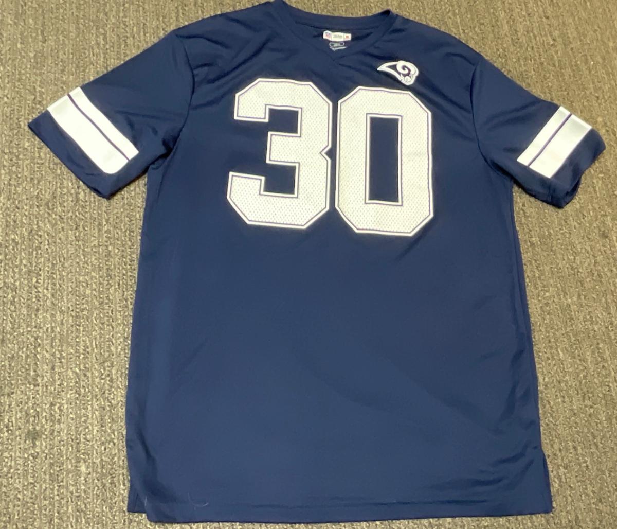 Officially licensed apparel size Large, #30 on front and back. Solid blue with white sleeve stripes and numbers. Good condition.