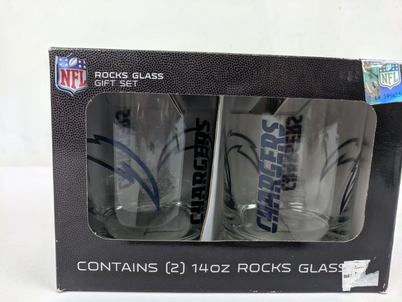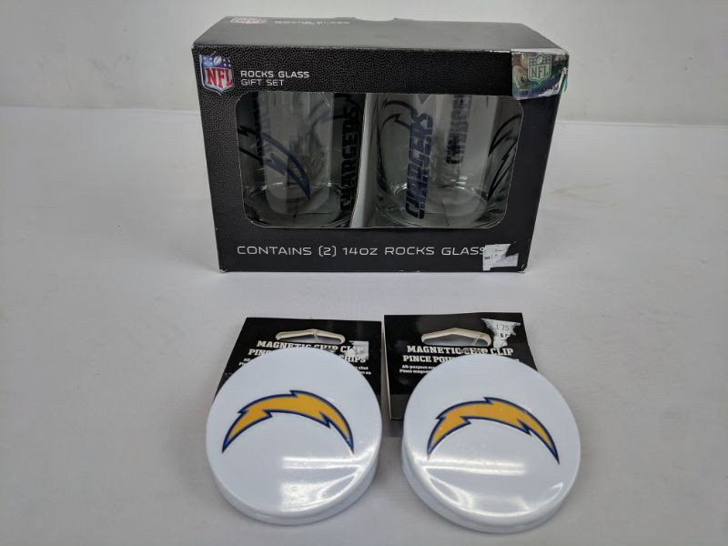 NFL Rocks Glass Chargers & 2 Magnetic Chip Clip - New