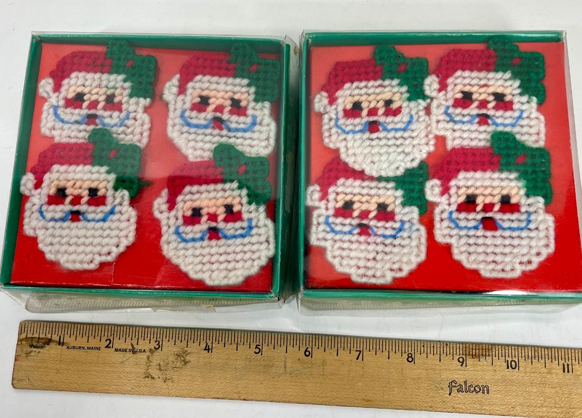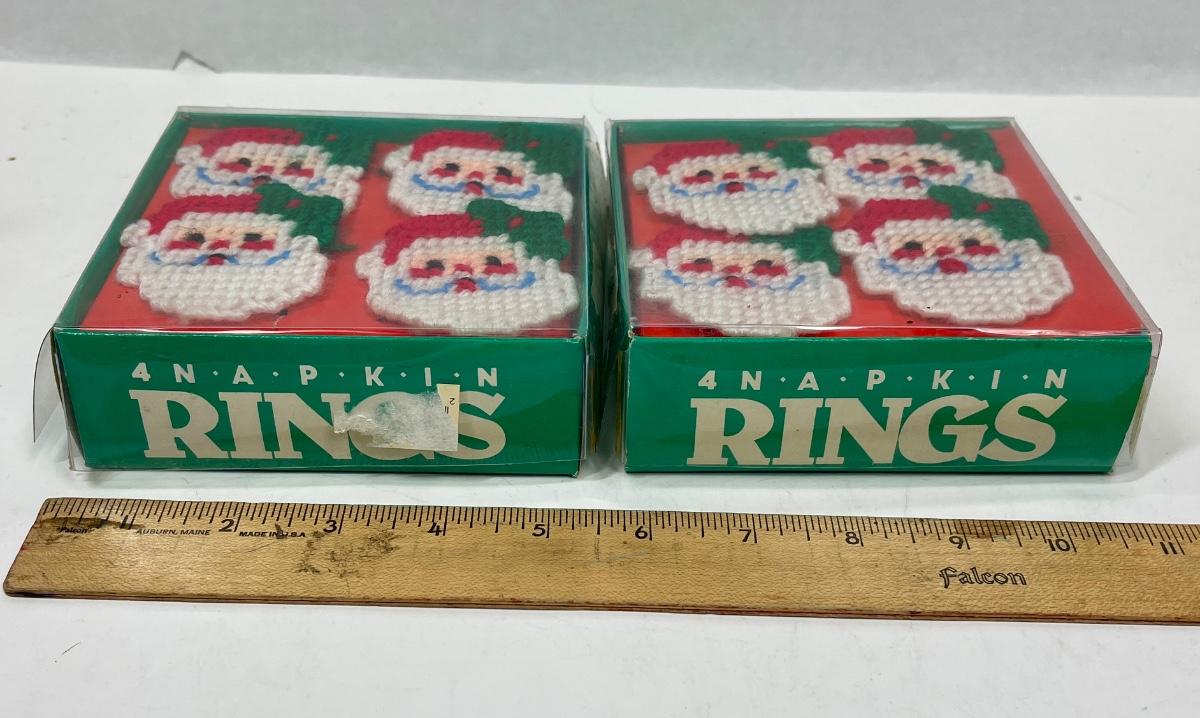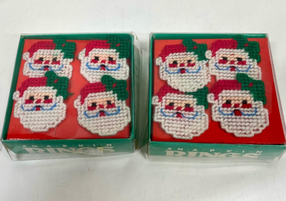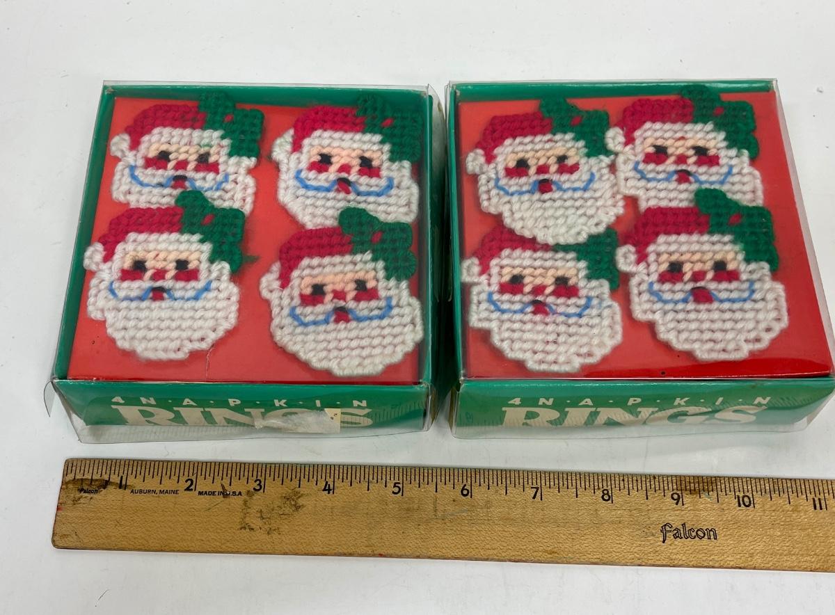 Handcrafted Needlepoint Santa Head Rings for Napkins
